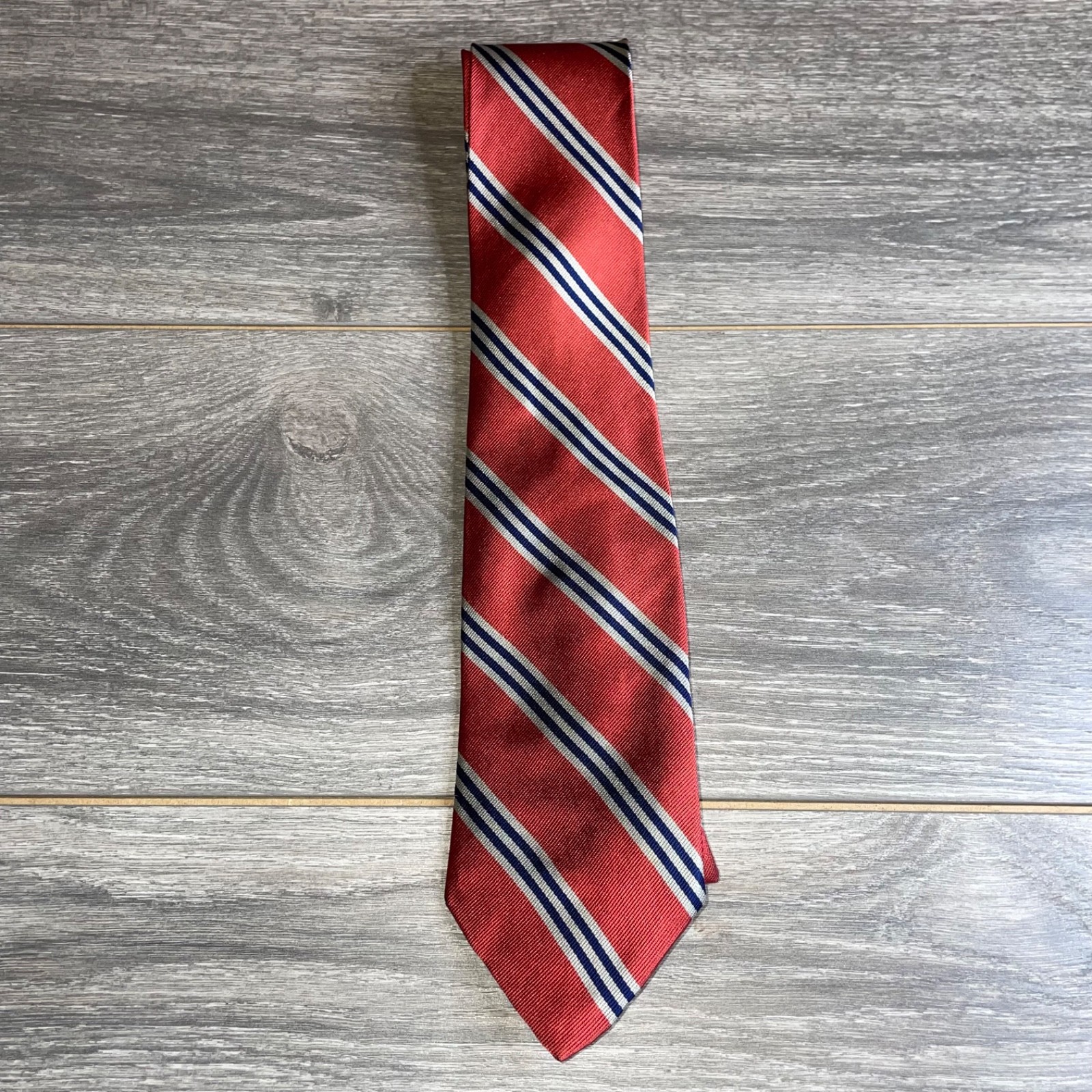 как выглядит Brooks Brothers Red With Navy White Stripes Tie 100 Silk Men