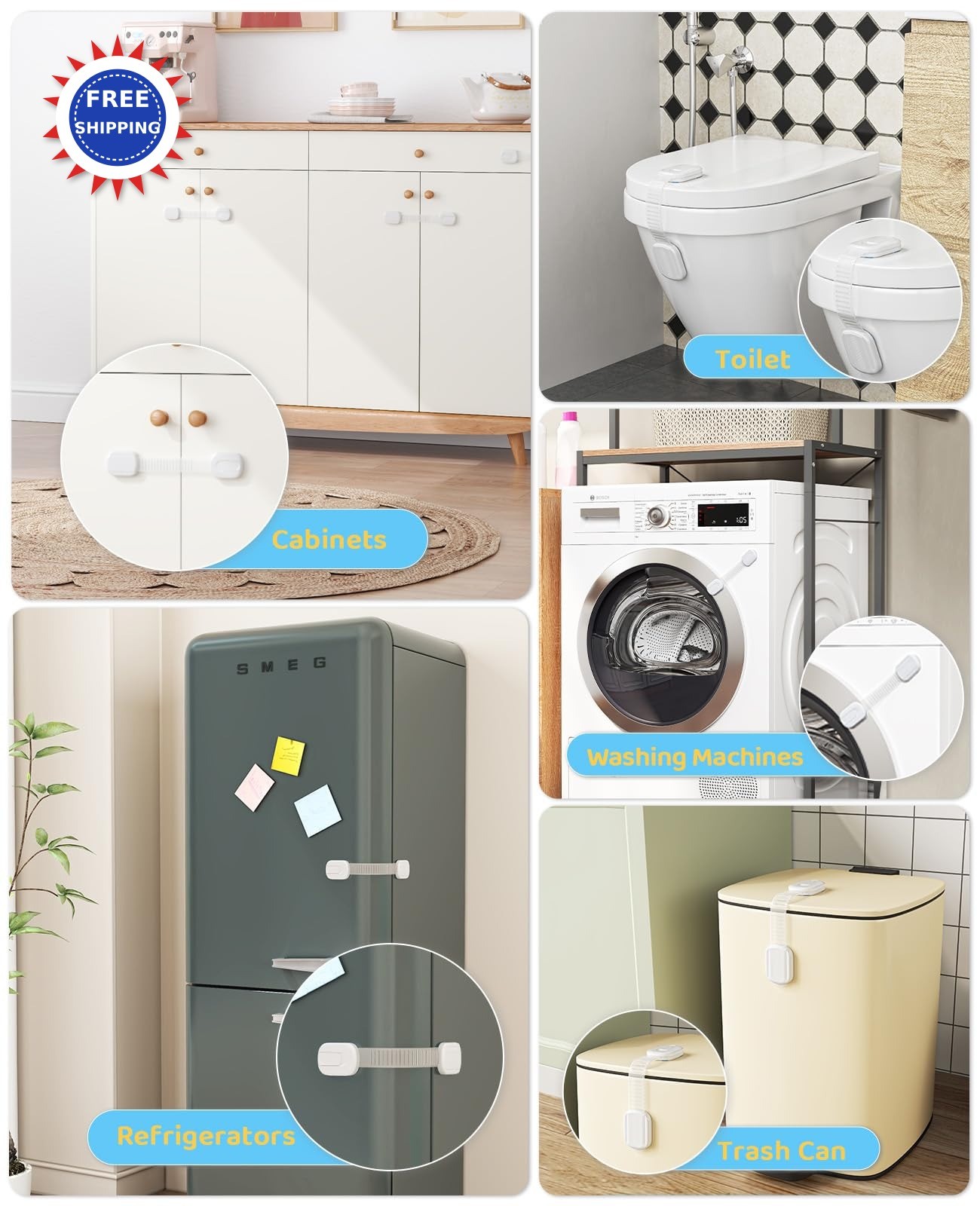 Cabinet Locks Baby Proofing 10 Pack Child Proof Latches Adjustable Straps Easy