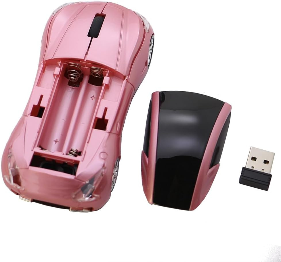 Computer Wireless Mouse Car Shape Optical Mice USB 2.4Ghz for PC Laptop Pink