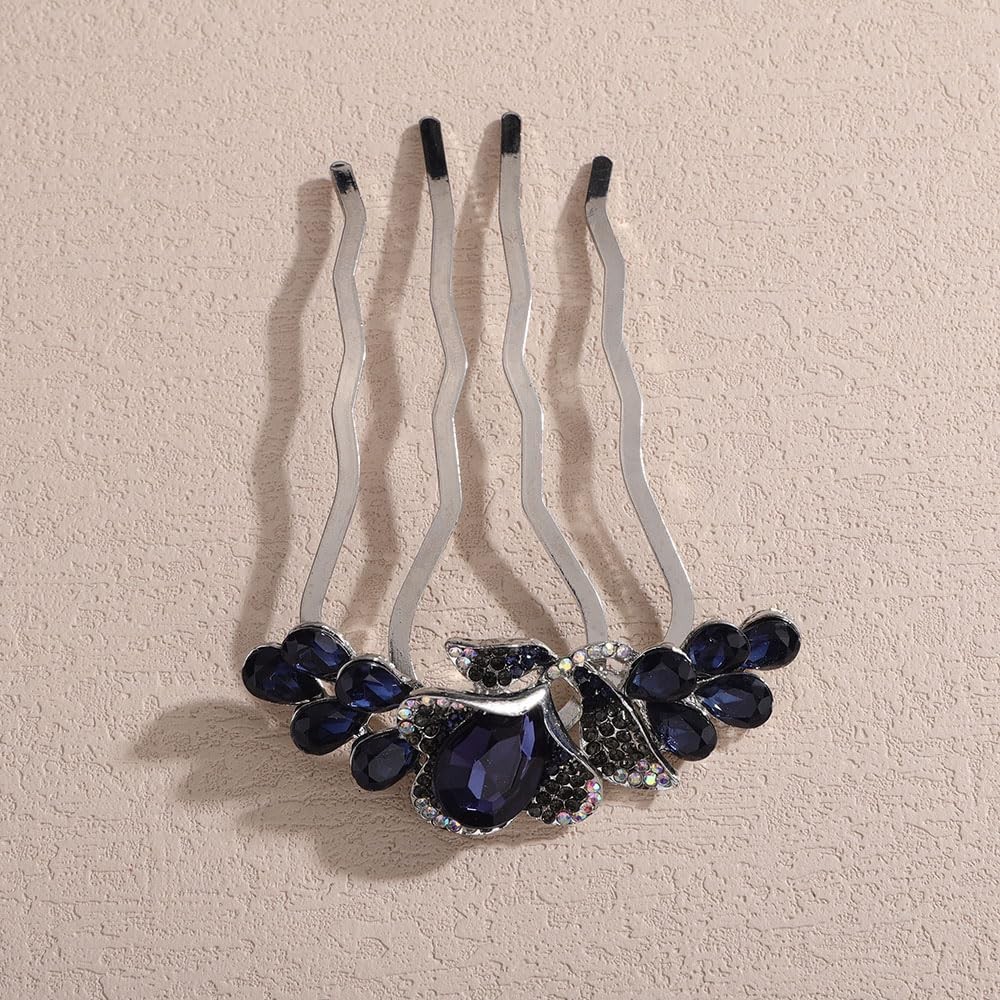 Blue Simple Bride Wedding Prom Sparkling Side Hair Comb Crystal Rhinestones F...