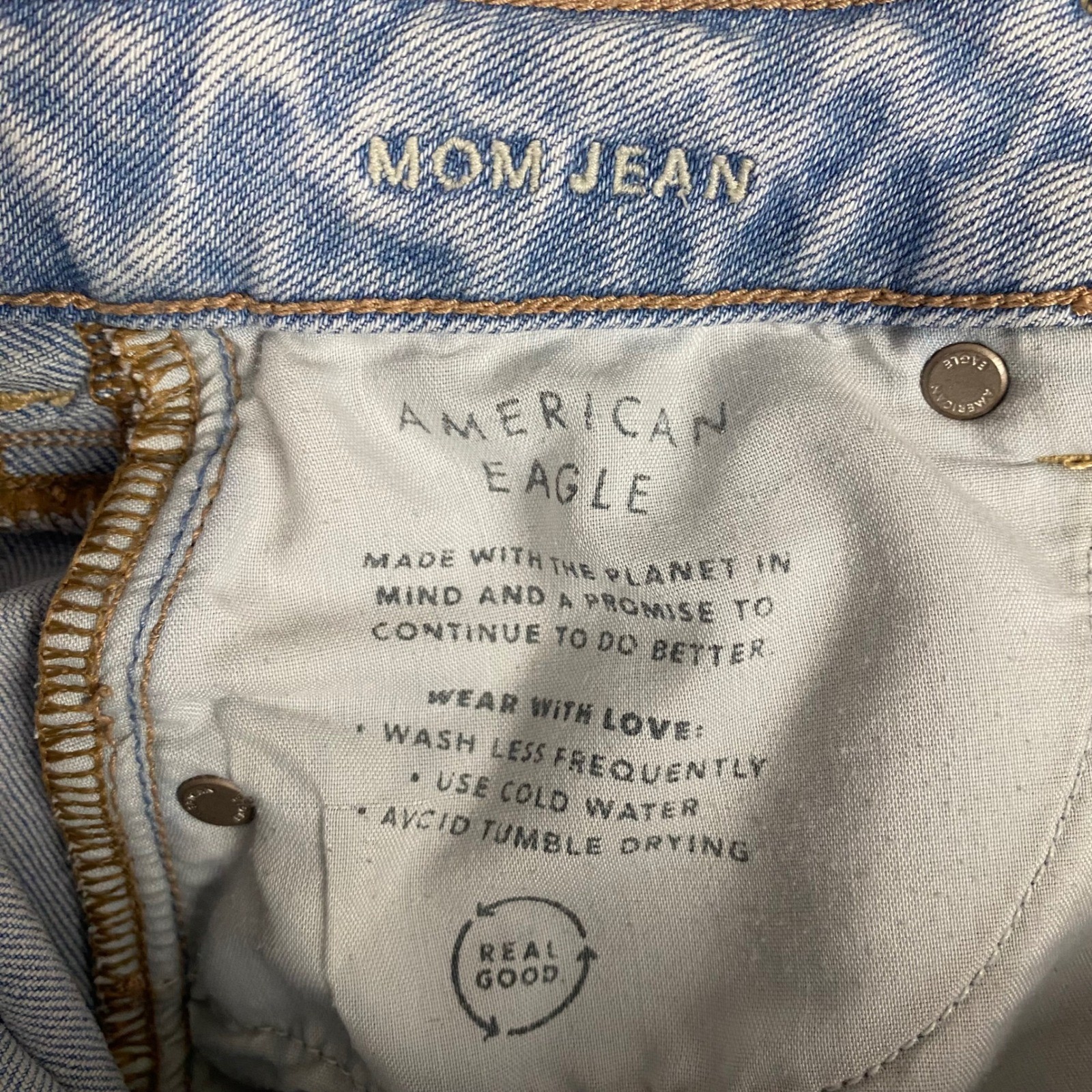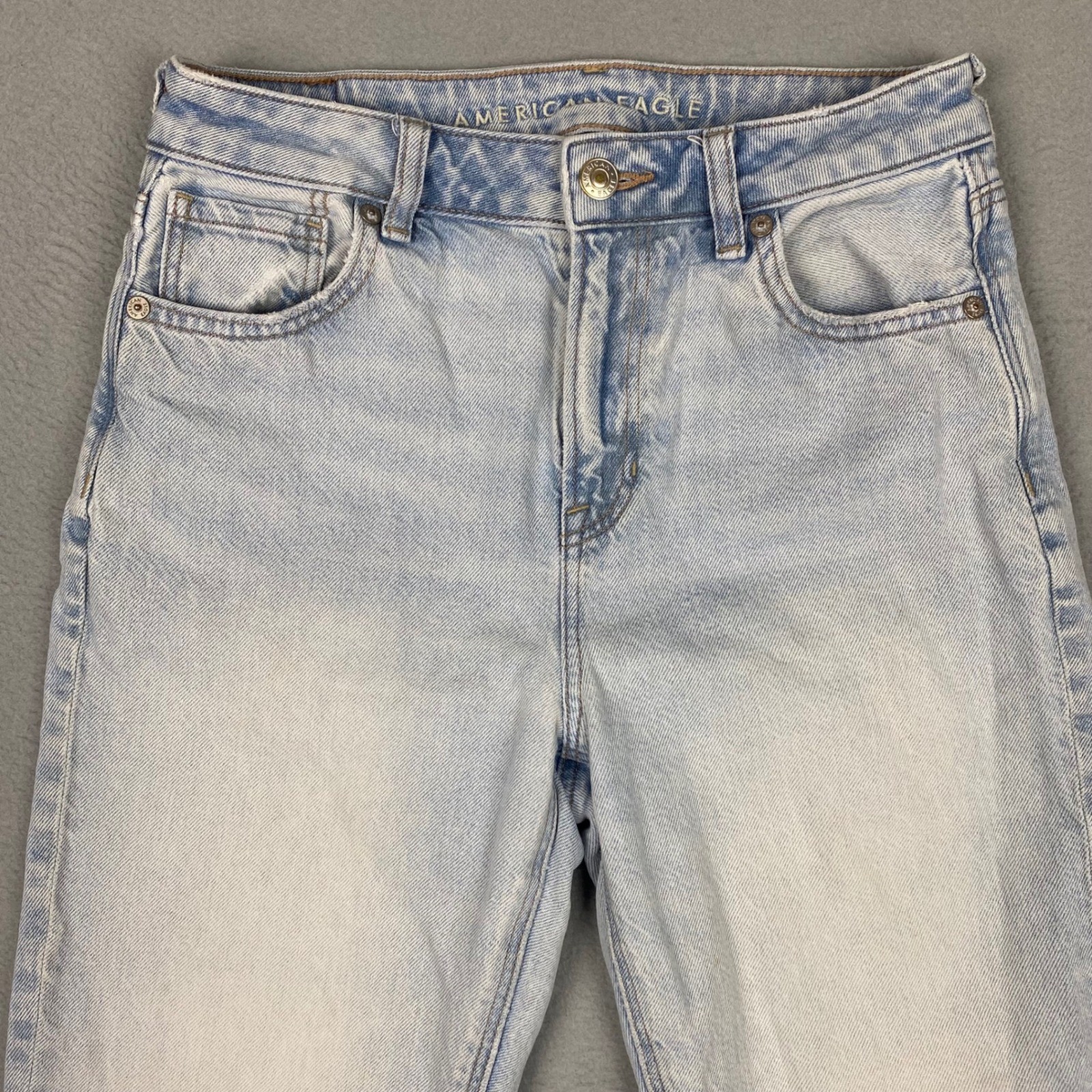 American Eagle Mom Jeans Womens 4 Short Light Wash High Rise Strigid Distressed