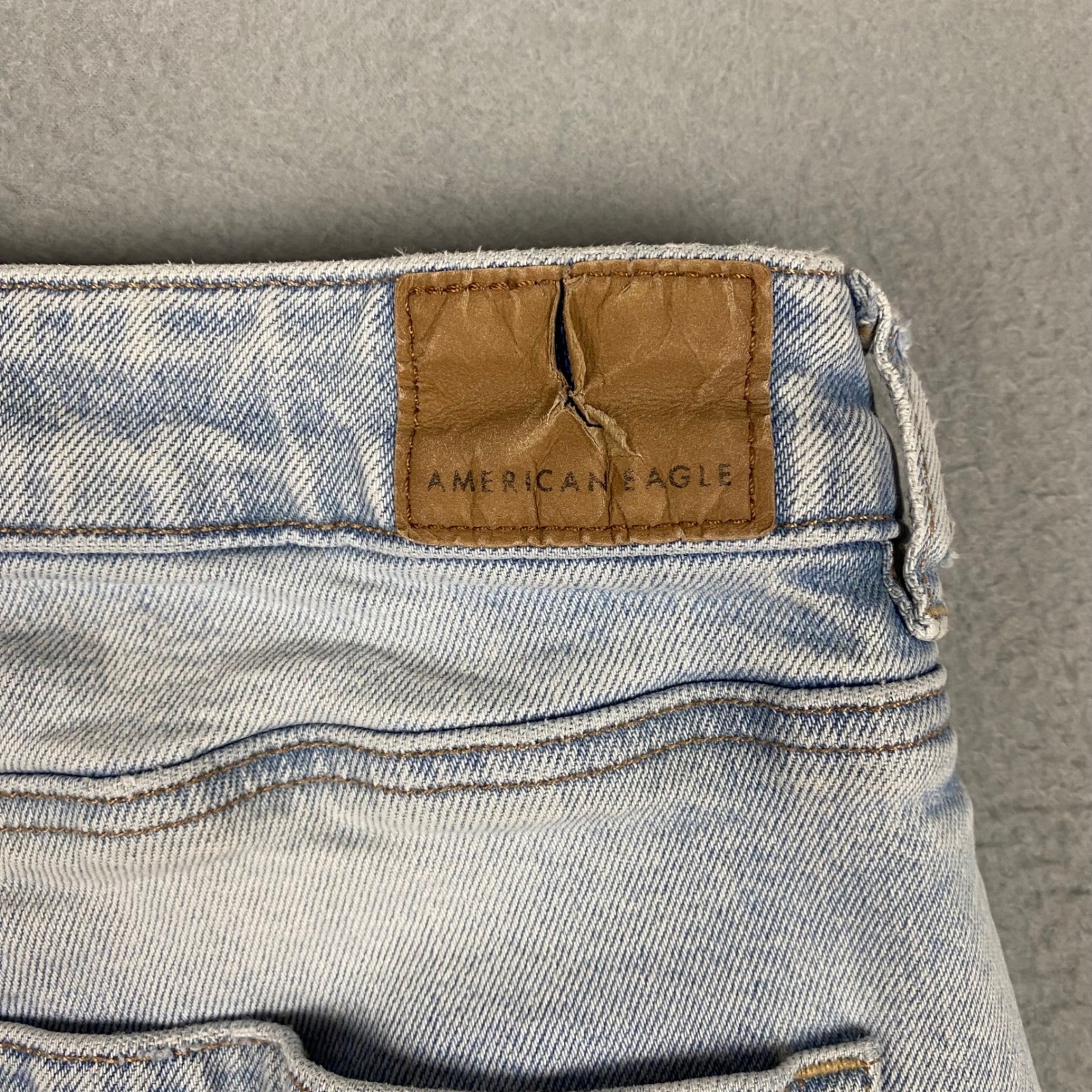 как выглядит American Eagle Mom Jeans Womens 4 Short Light Wash High Rise Strigid Distressed фото