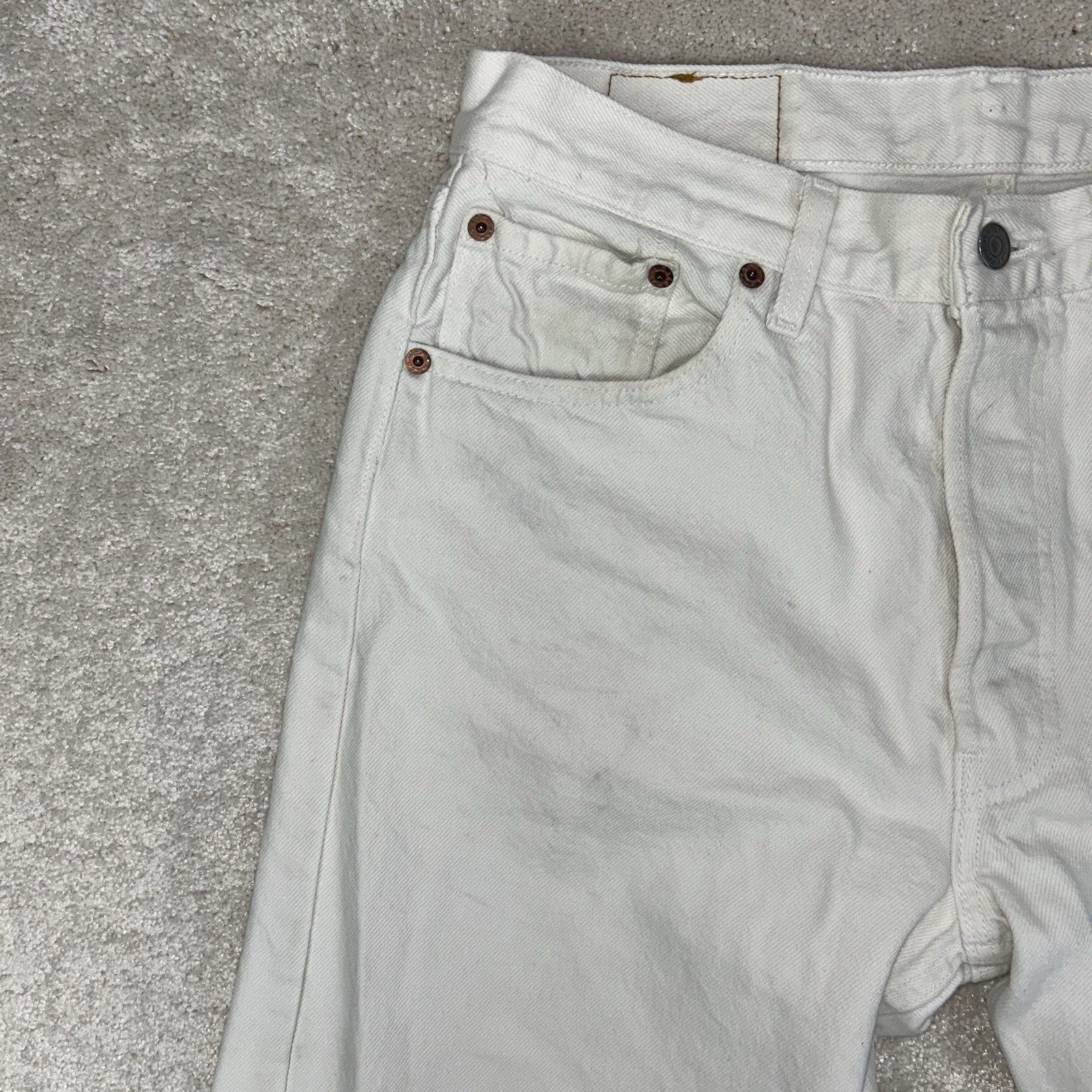 как выглядит Vintage 90 s Levis 501xx USA Made 501-0651 Straight Leg White Denim Jeans 33x34 фото