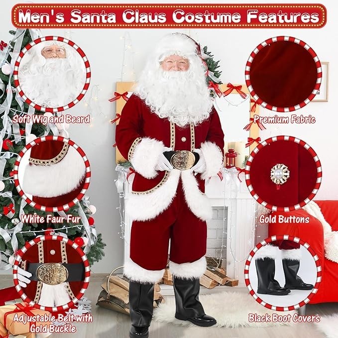 Christmas Men s Santa Costume Set Adult 11 Pcs Deluxe Santa Claus Costume Sui...