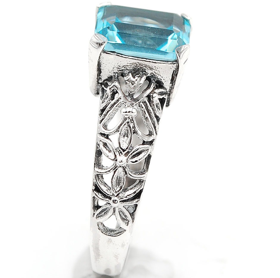 2CT Natural Aquamarine 925 Solid Sterling Silver Nouveau Style Ring Sz 6 AZ2