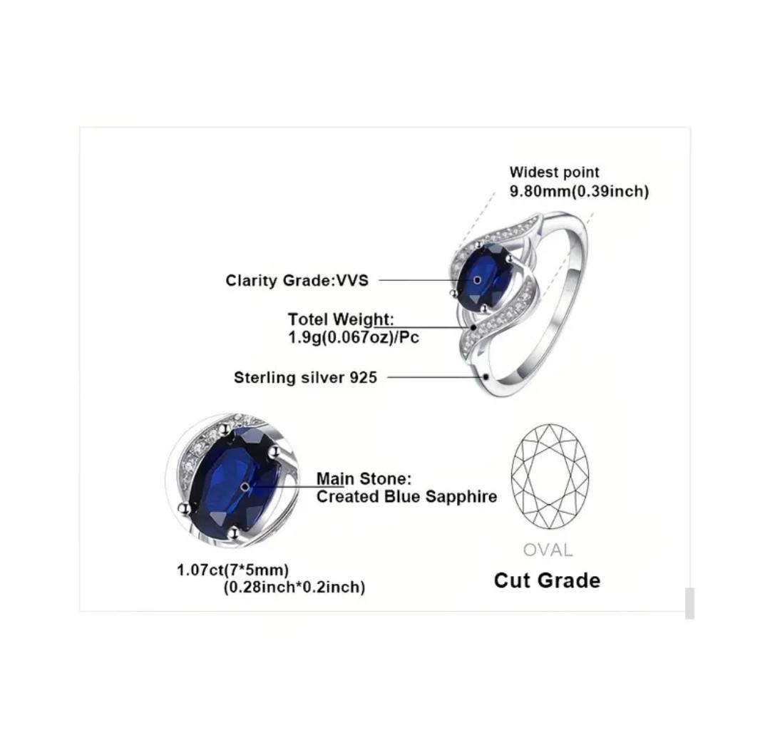как выглядит New Blue Sapphire 1ct 925 Sterling Silver Oval Cut Lab Created Size 8 USA Ship фото