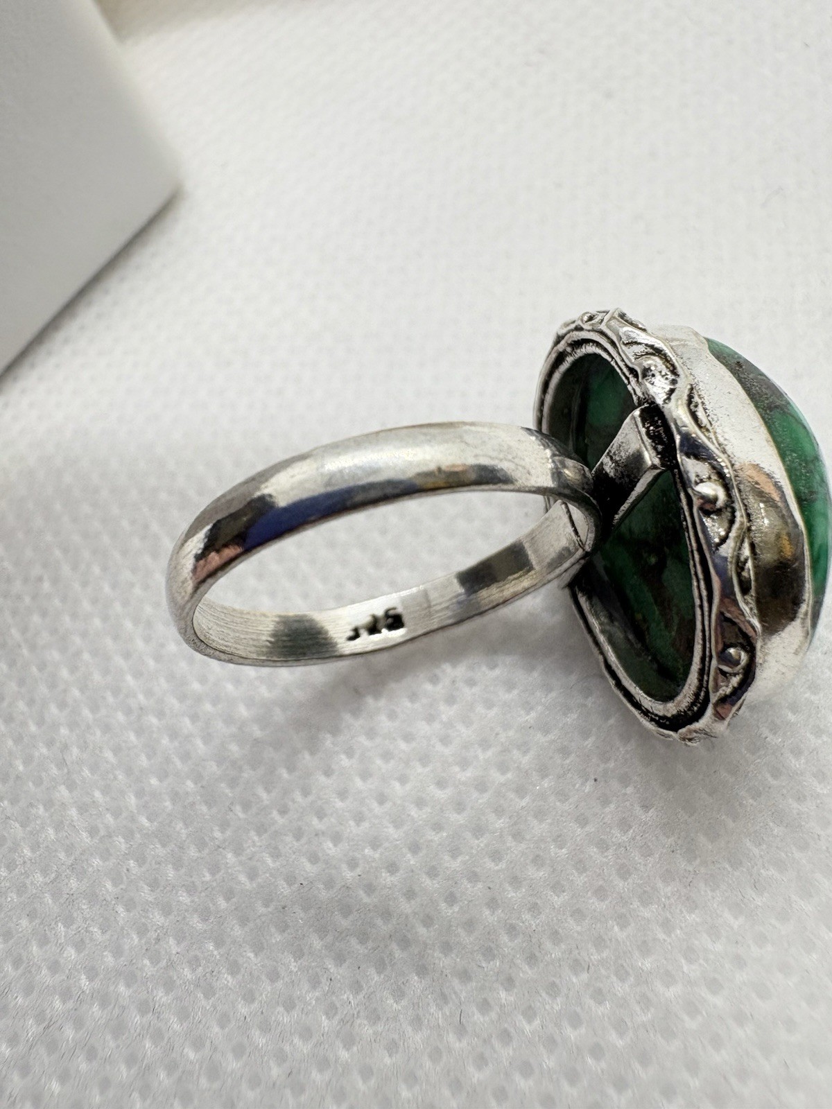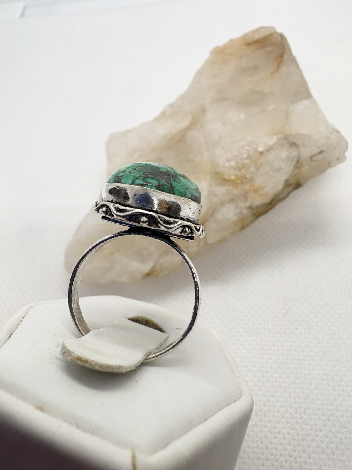 как выглядит Vintage Sterling Silver Green Turquoise Ring 925 Southwest Cabochon Size 6.75 фото