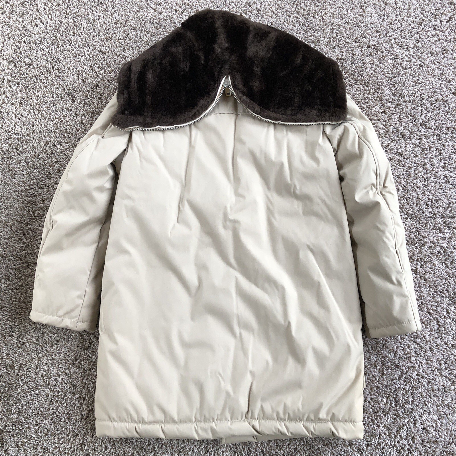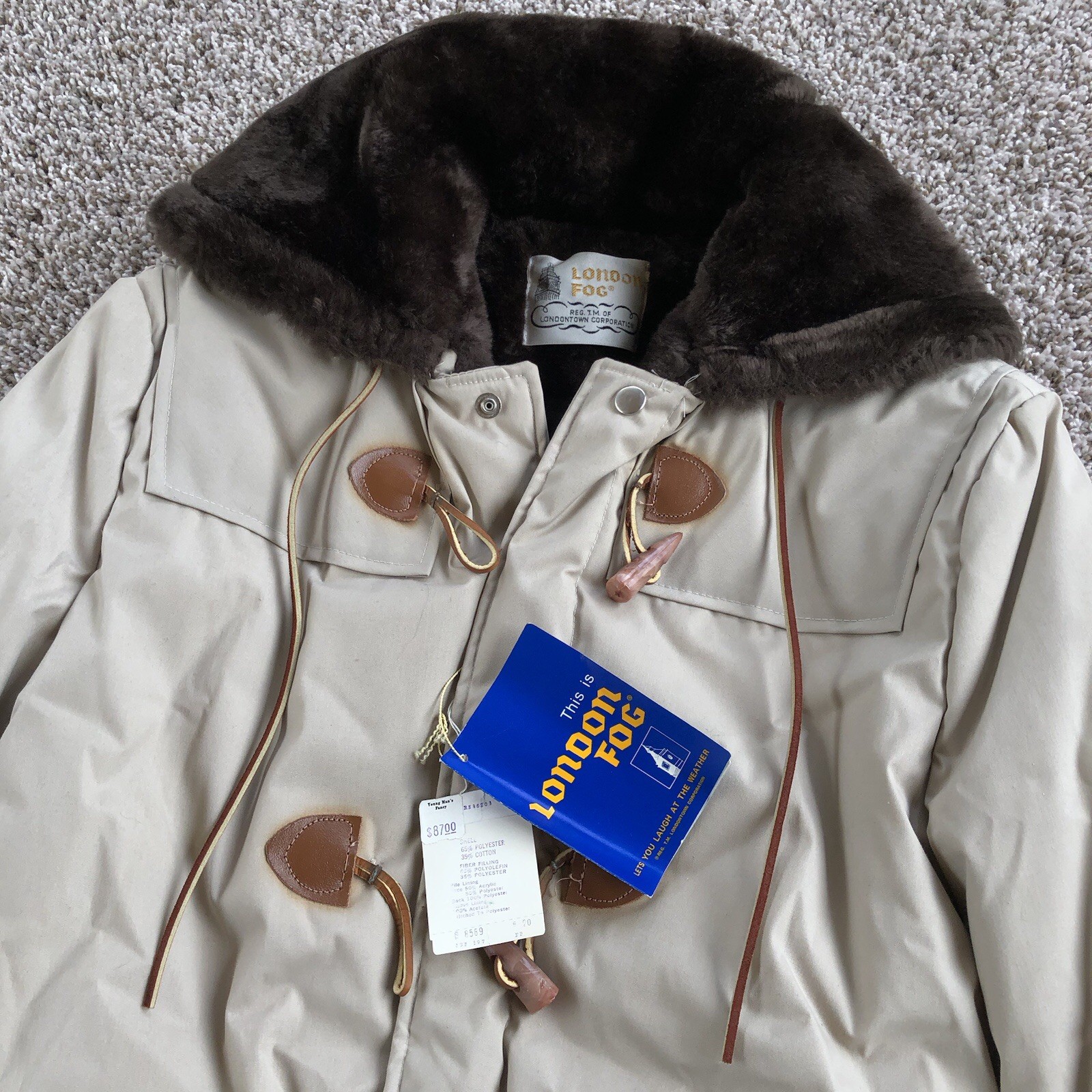 как выглядит Vintage London Fog Faux Fur Lined Hooded Toggle Coat Beige Tan Union Made USA фото