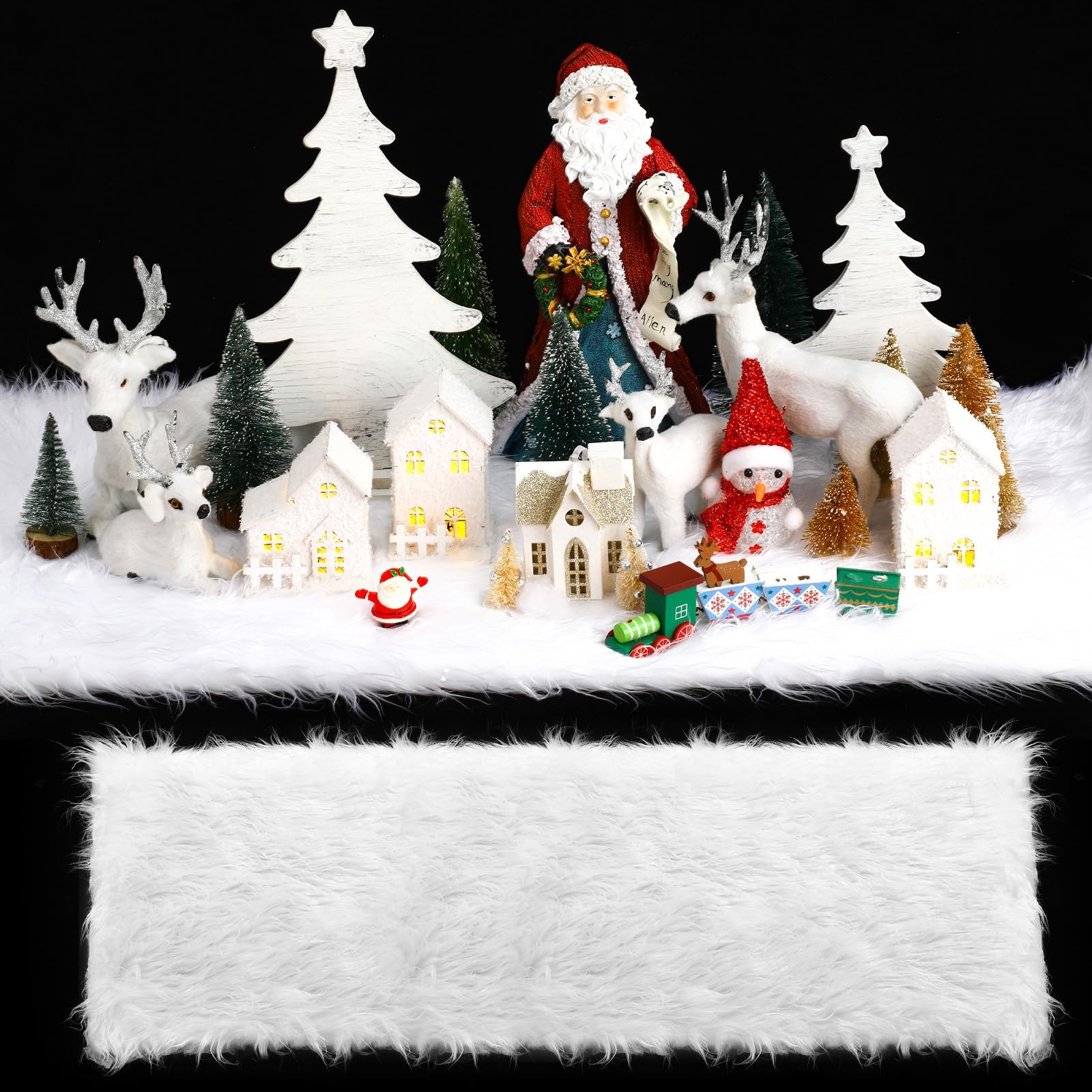 как выглядит 2.6 x 7.9 ft Christmas Fake Snow Blanket for Christmas Village Fuzzy Faux Fur... фото