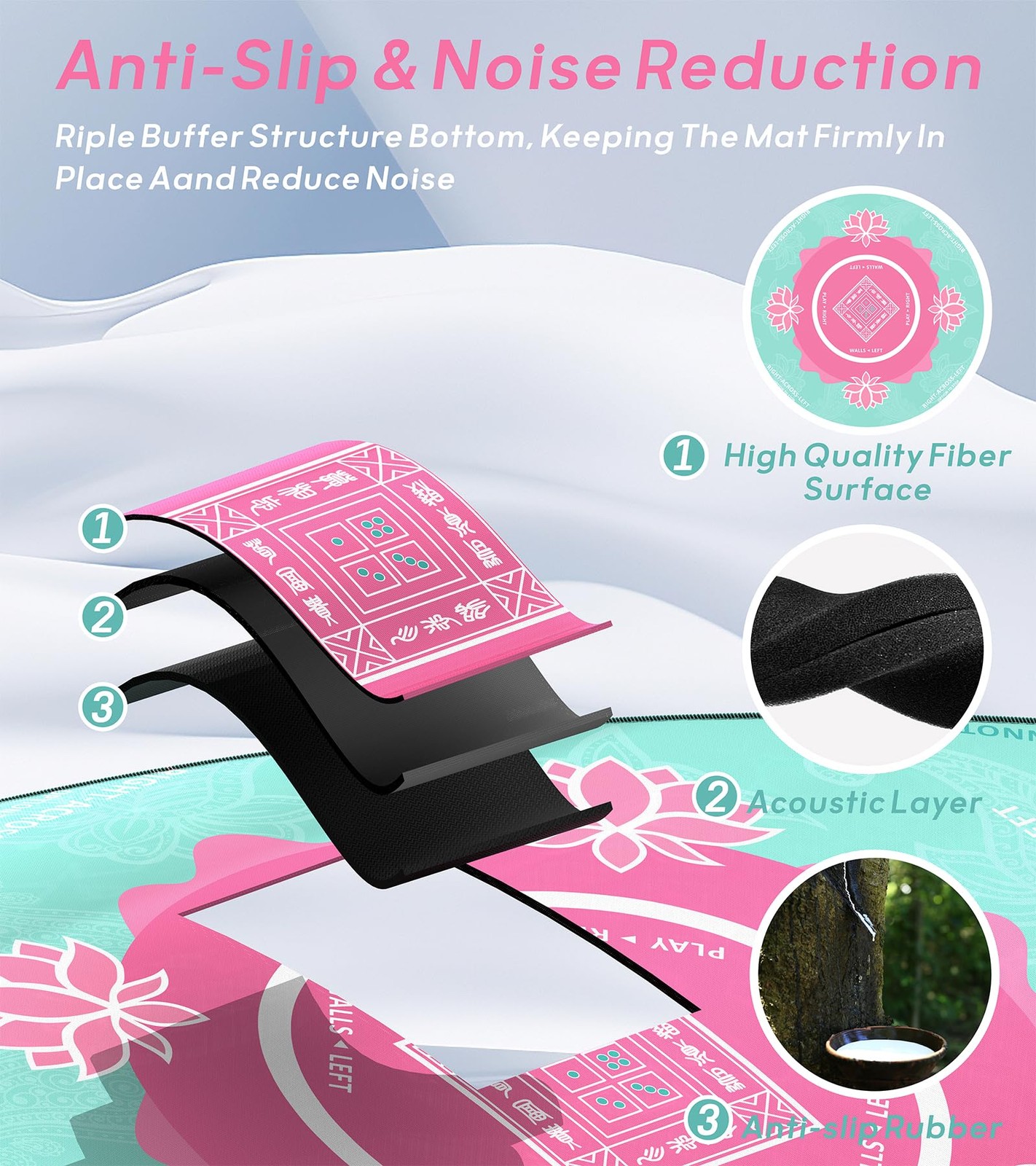 Mahjong Mat with Carrying Bag- 32 x32Non-Slip Noise Reduction Gaming Mat fo...