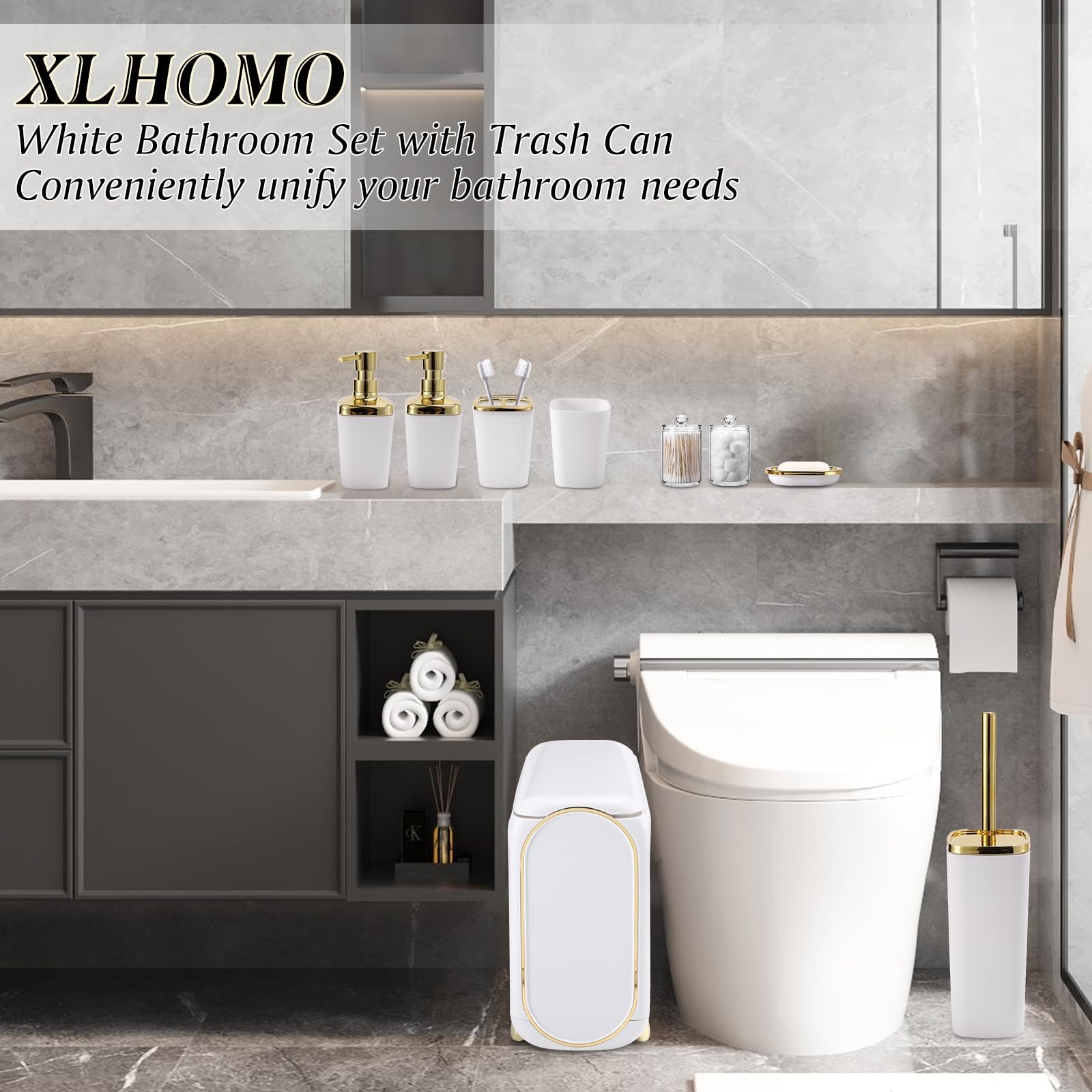 Bathroom Set, White Bathroom Set, Bathroom Accessory Set with Slim Trash Can,...