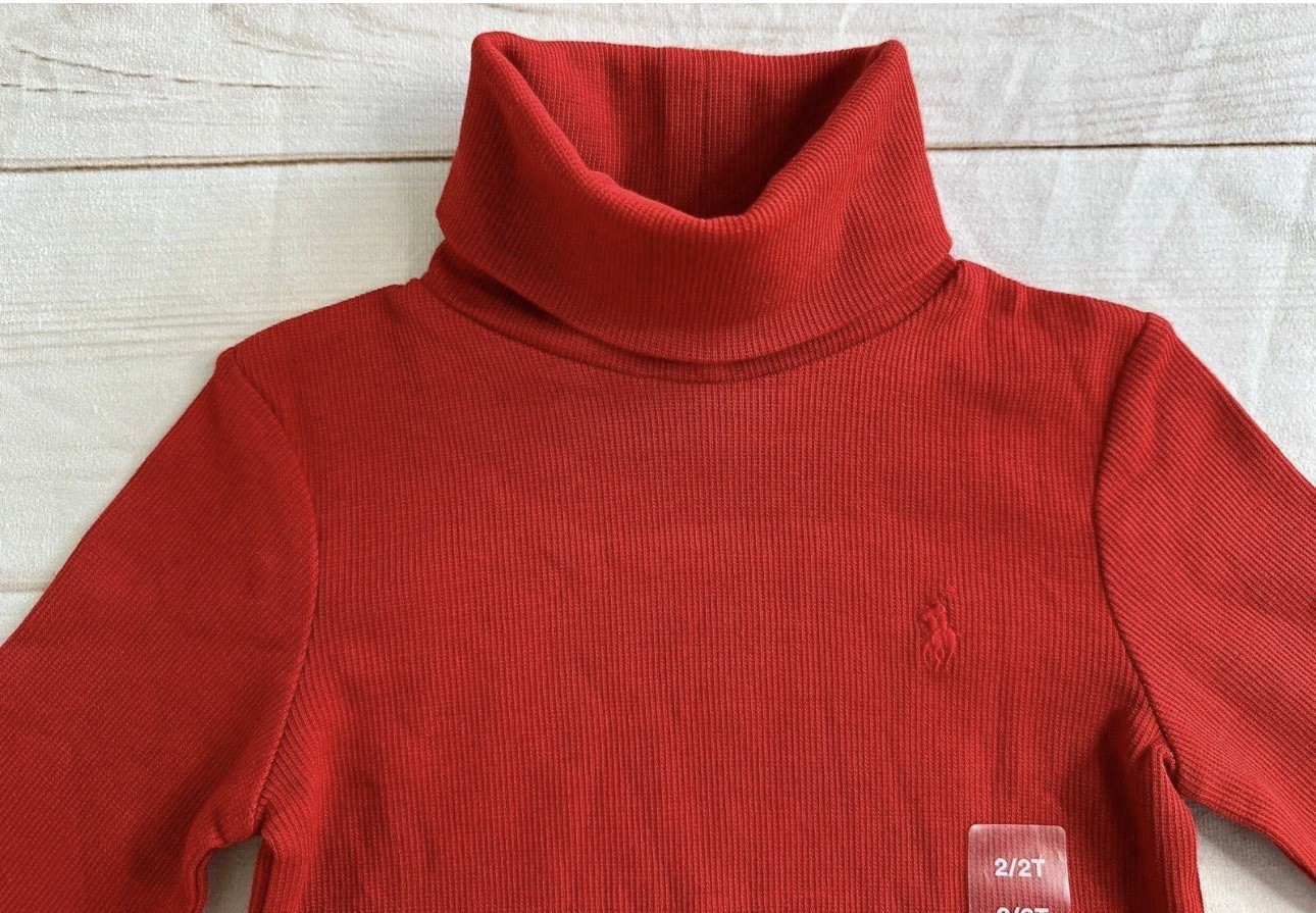 Polo Ralph Lauren Little Girls T-shirt Red XL 16 Ribbed Cotton-Blend Turtleneck