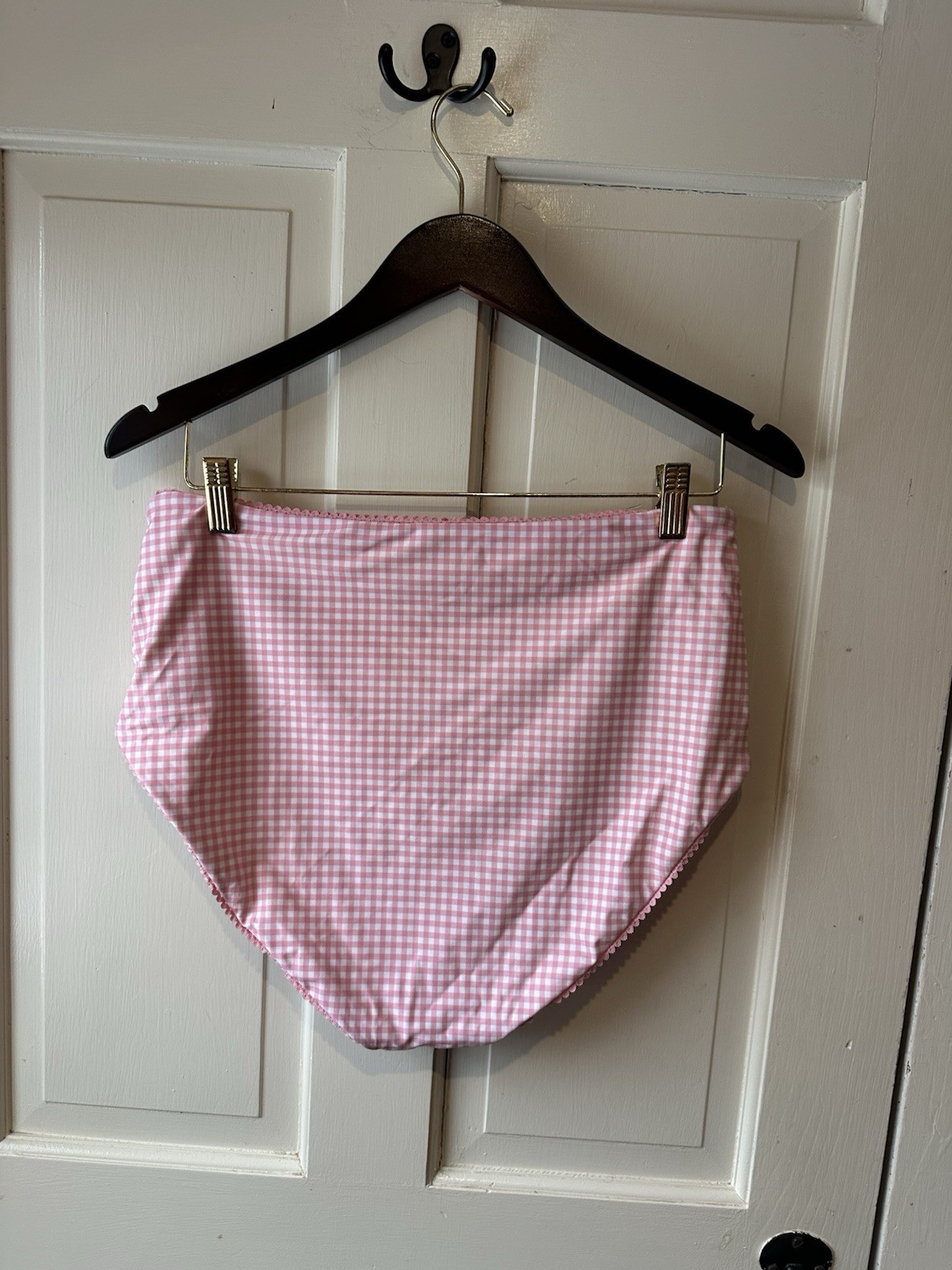 Minnow NWT High Waist Bikini Bottom Pink Gingham Plaid XL Resort Sustainable