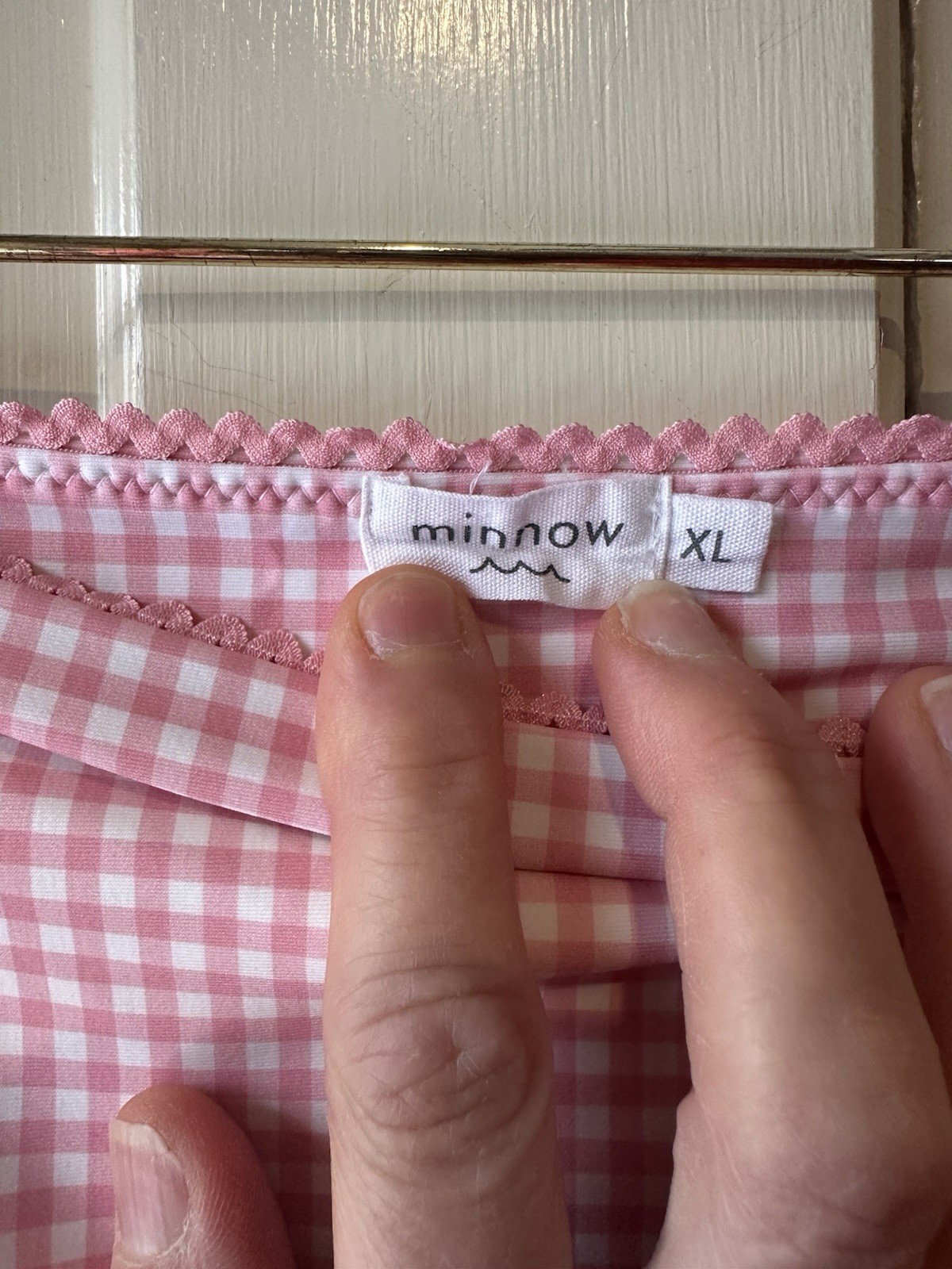 как выглядит Minnow NWT High Waist Bikini Bottom Pink Gingham Plaid XL Resort Sustainable фото