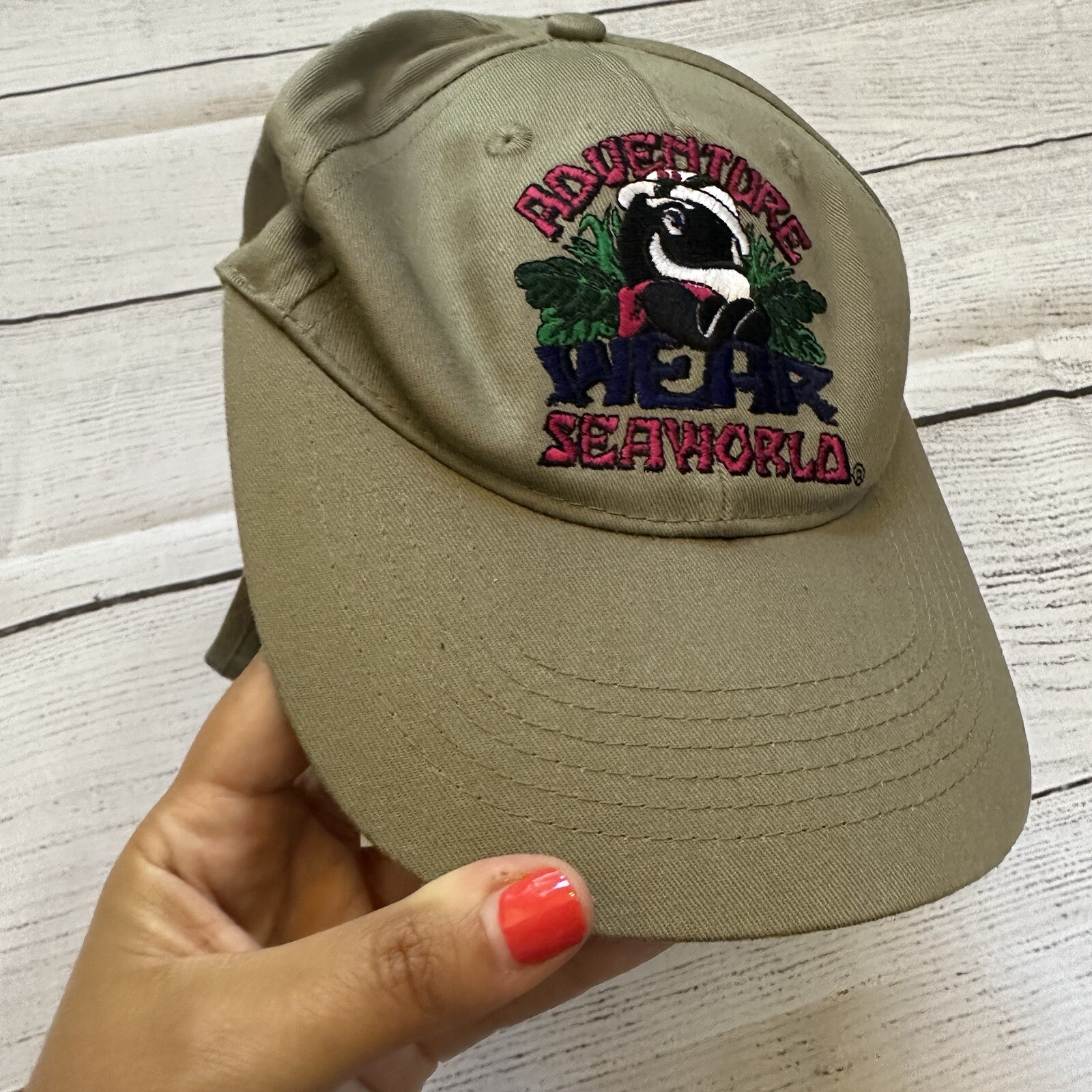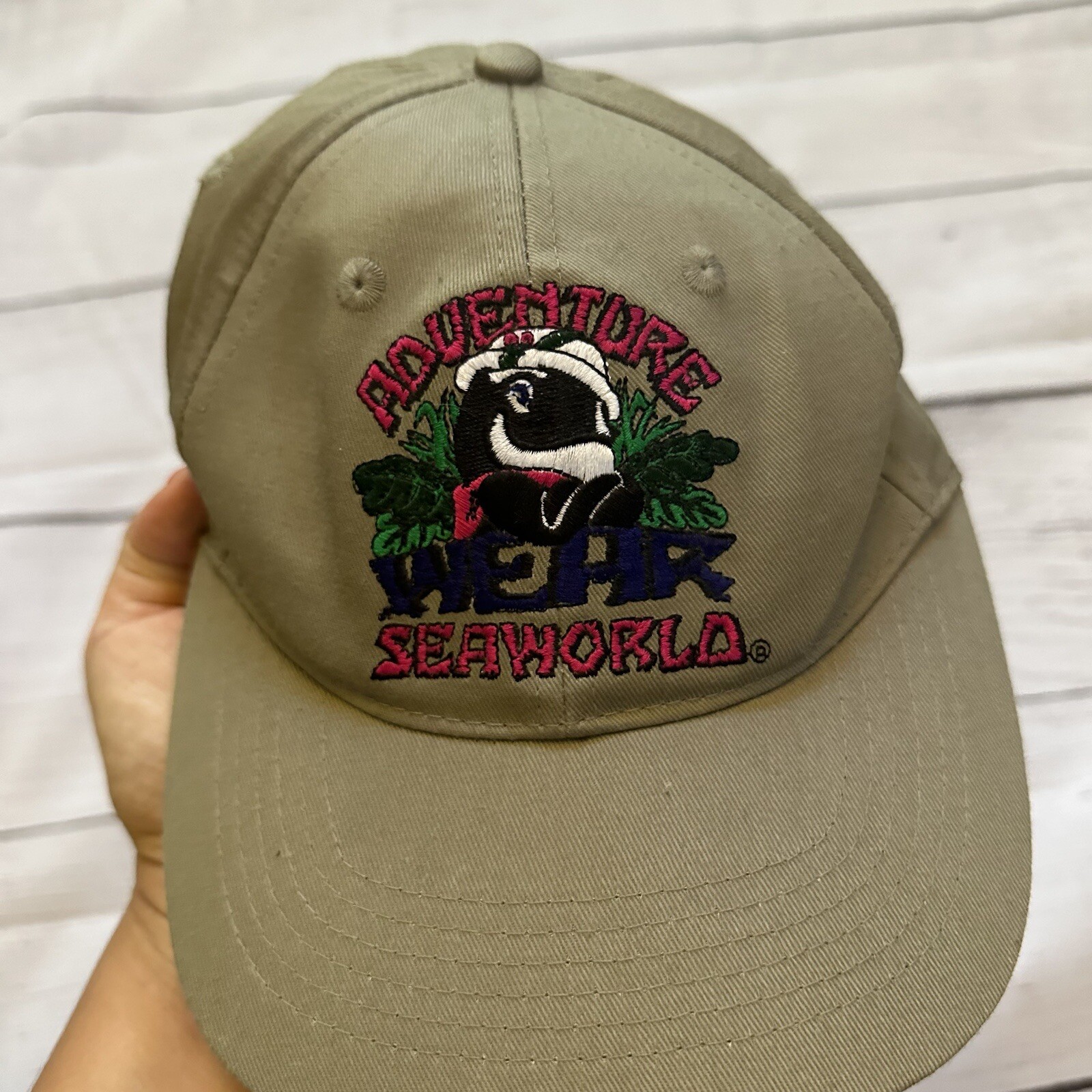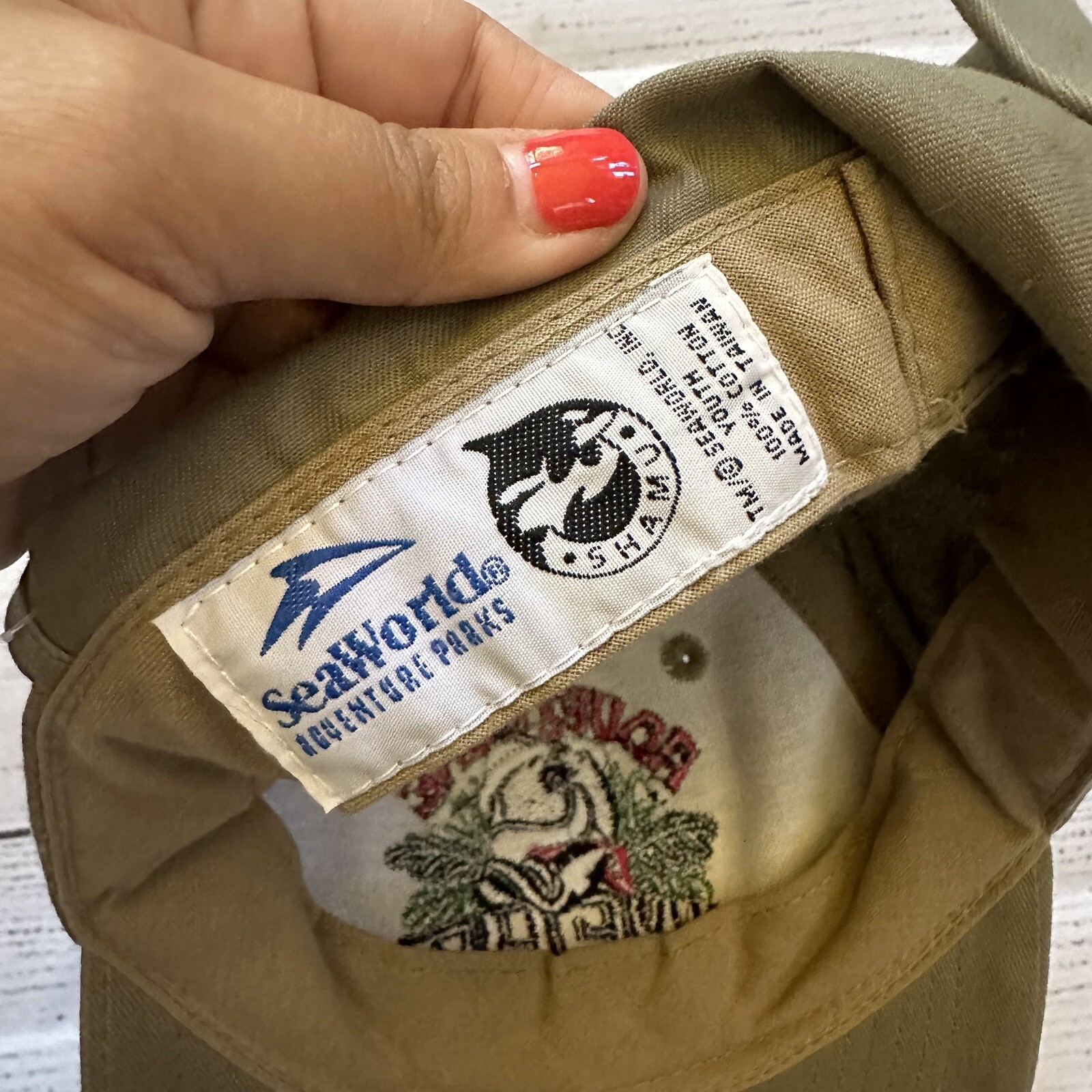 Sea World Shamu khaki youth baseball hat with neck flap