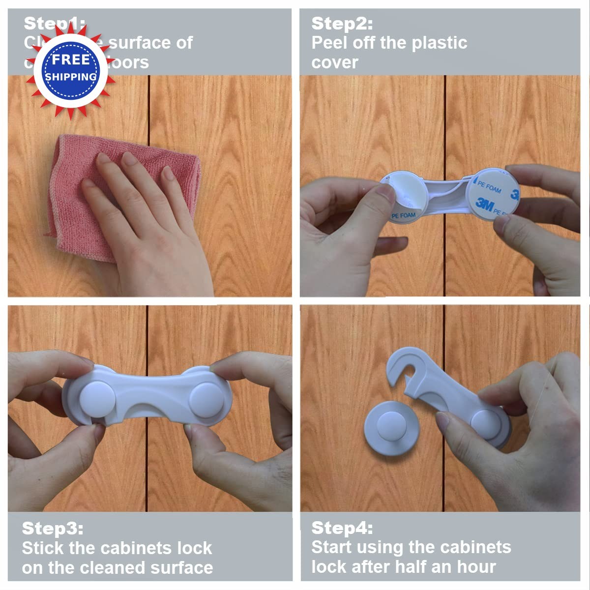 Cabinet Locks 4 Pack Child Proof Cupboard Drawer Fridge Closet Safety Door Baby