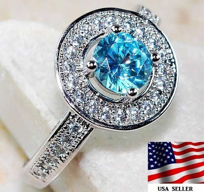 2CT Aquamarine Topaz 925 Solid Genuine Sterling Silver Ring Sz 6 JB2-9