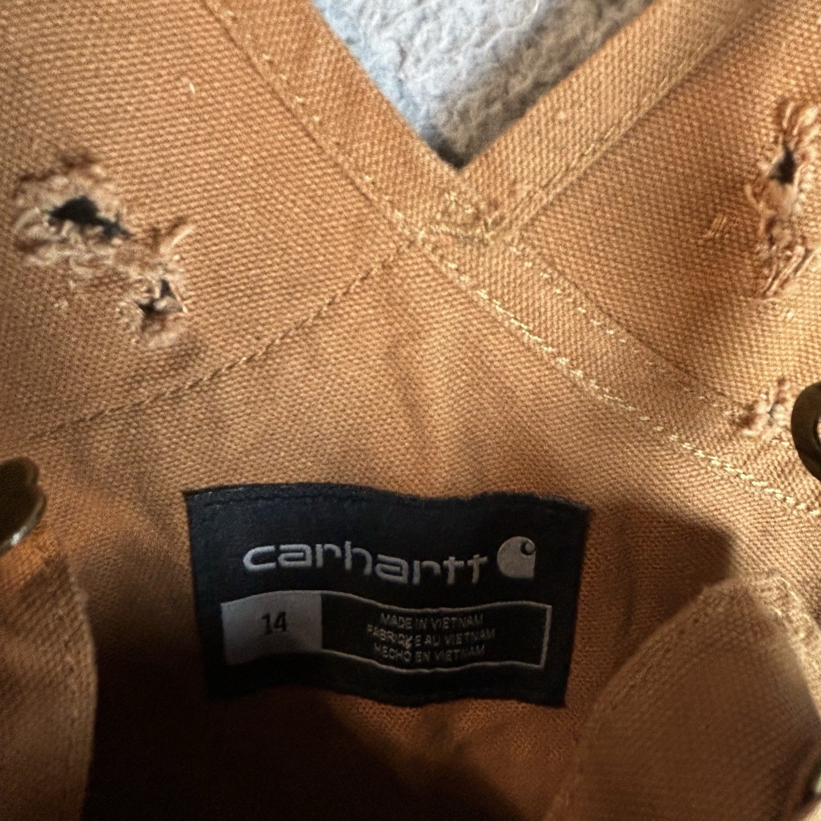 как выглядит Carhartt Womens Quilted Lined Canvas Side Zip Double Knee Overall Bibs Sz 13x26 фото