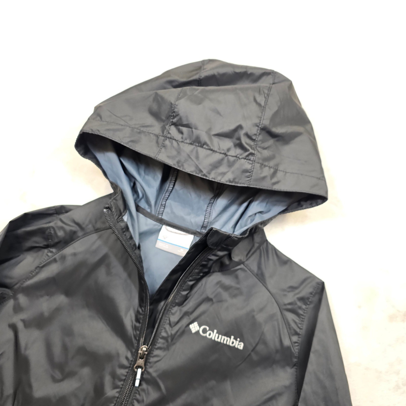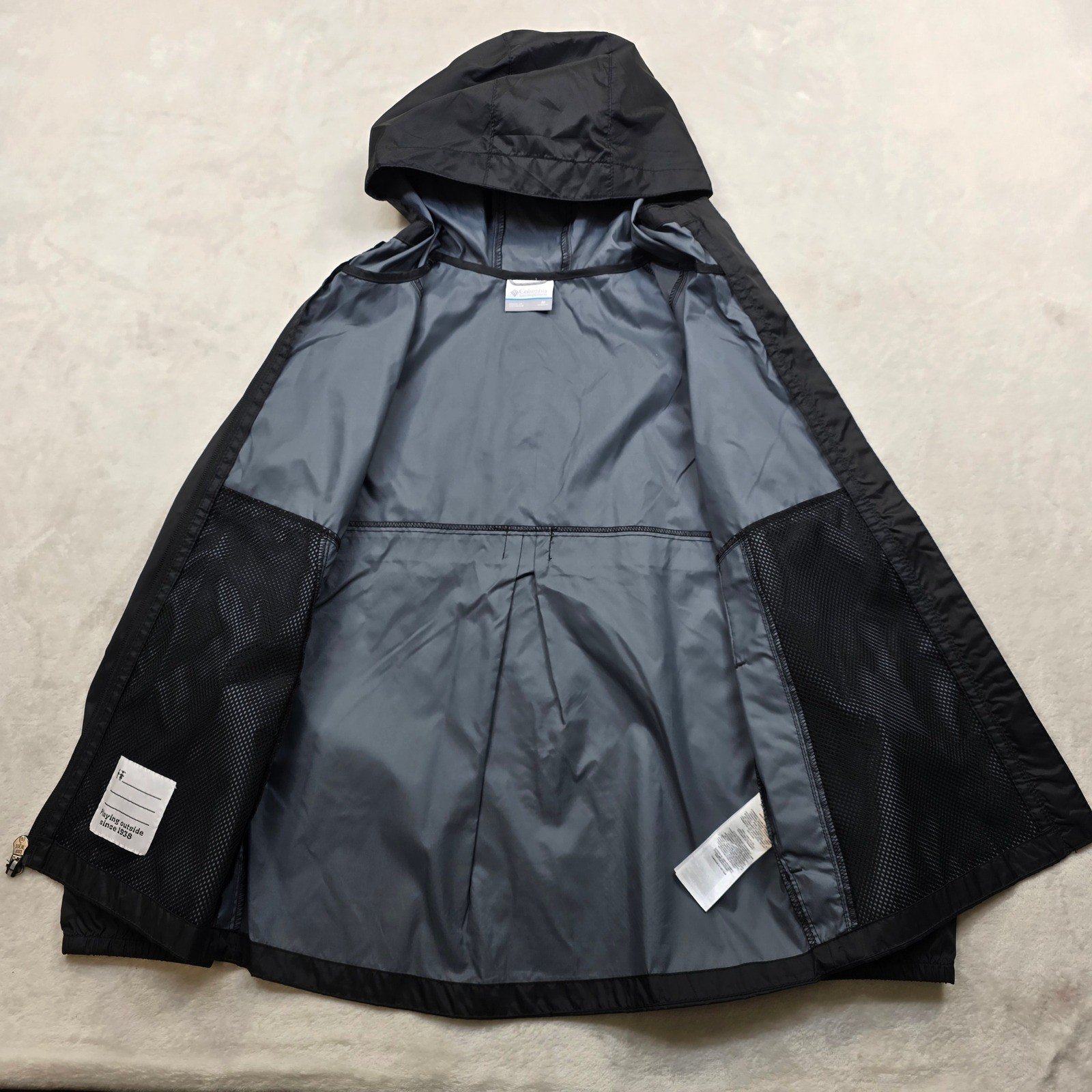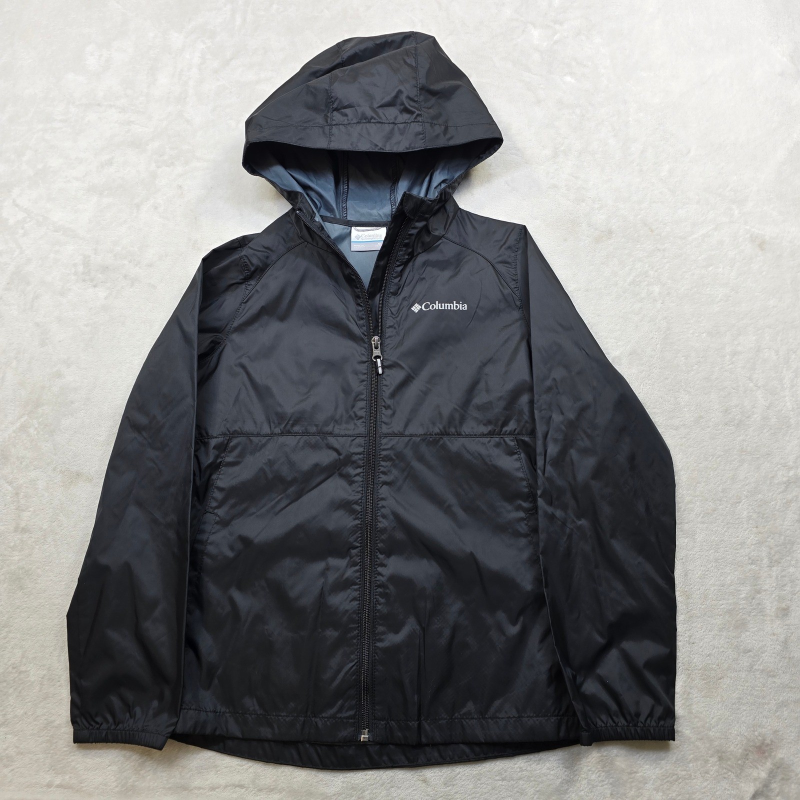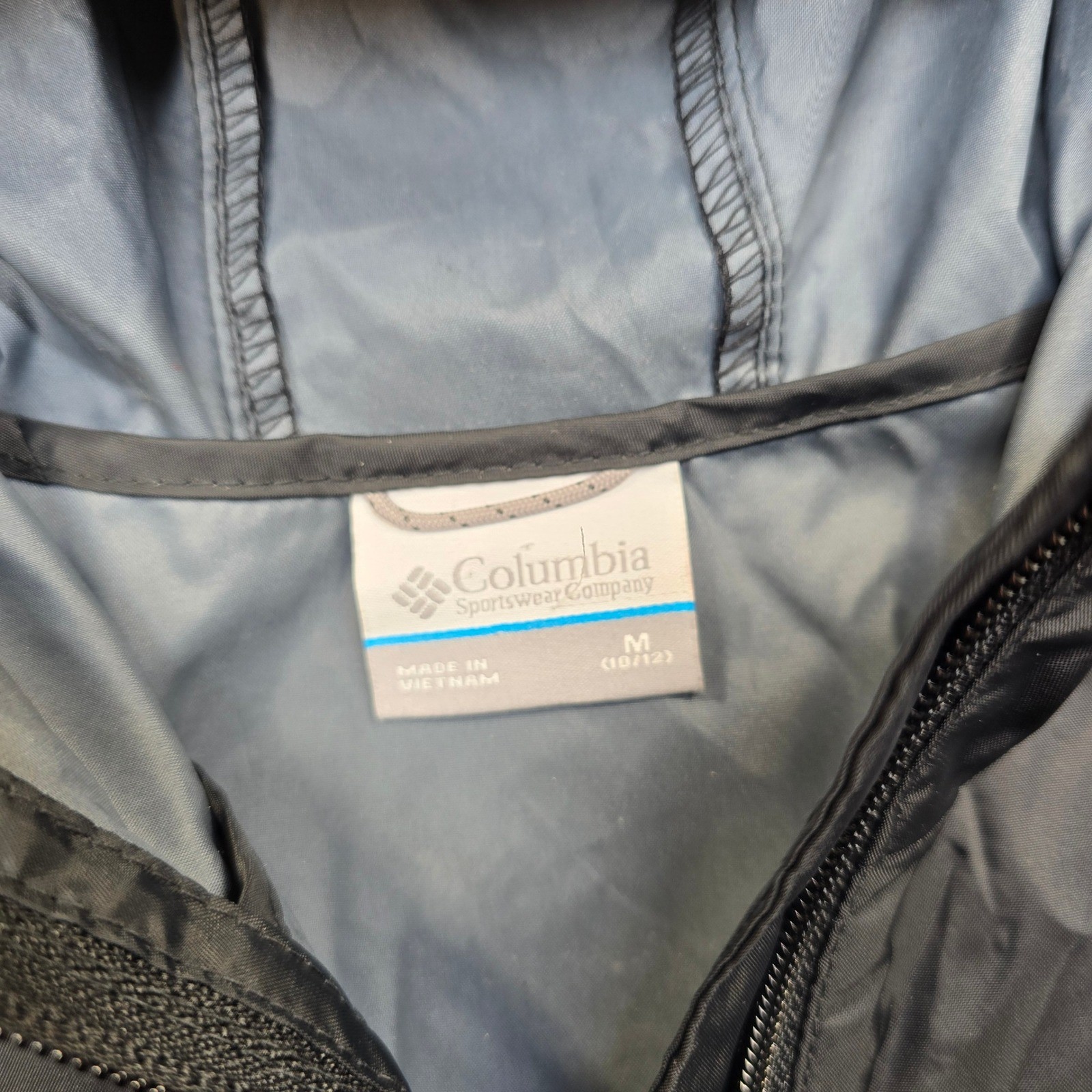 Columbia Windbreaker Jacket Kids Medium 10 12 Black Hood Ltweight Waterproof