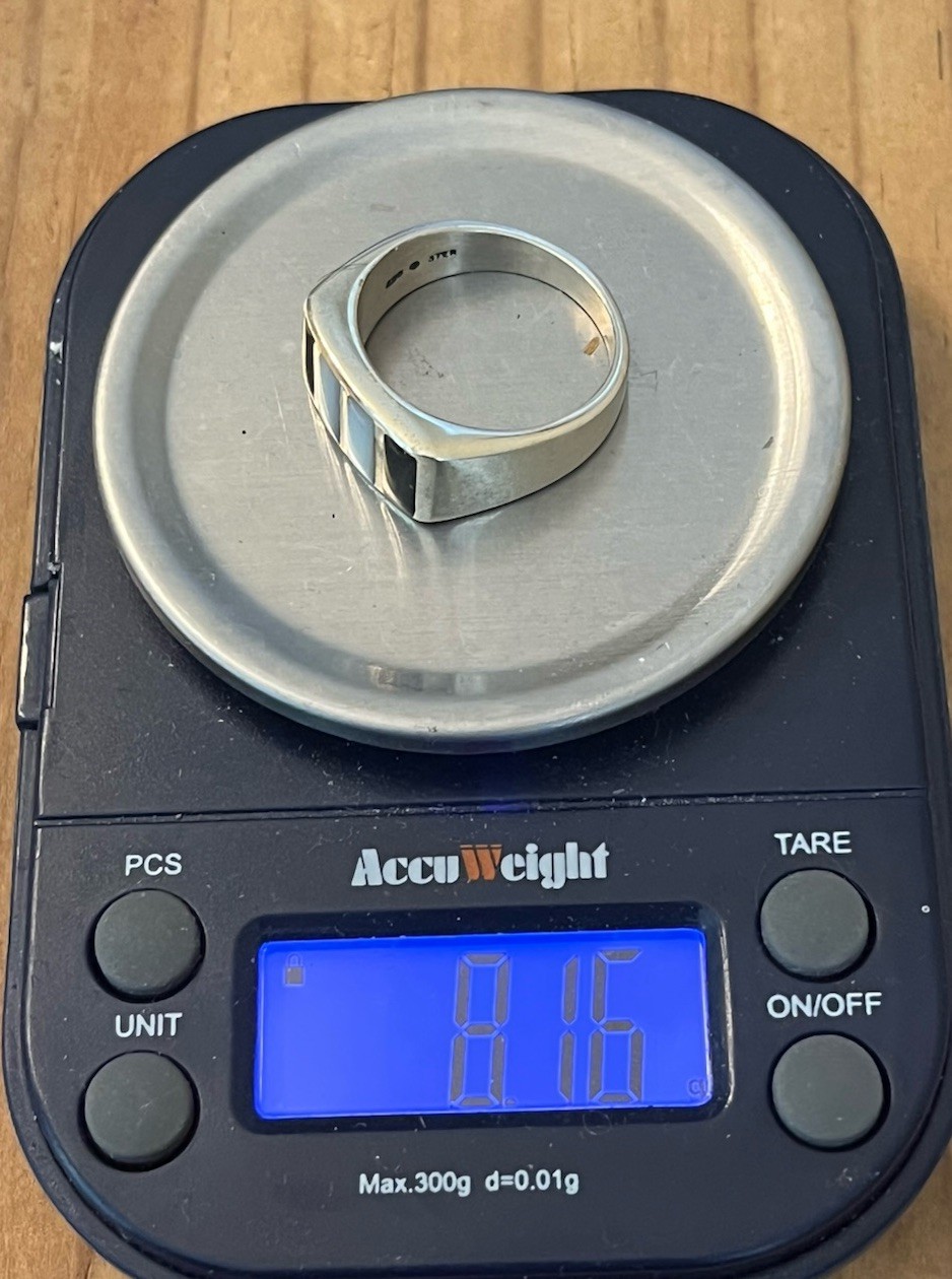 как выглядит Size 9 Mother Of Pearl Black Onyx Inlay Sterling Silver Band Ring 925 Vintage фото
