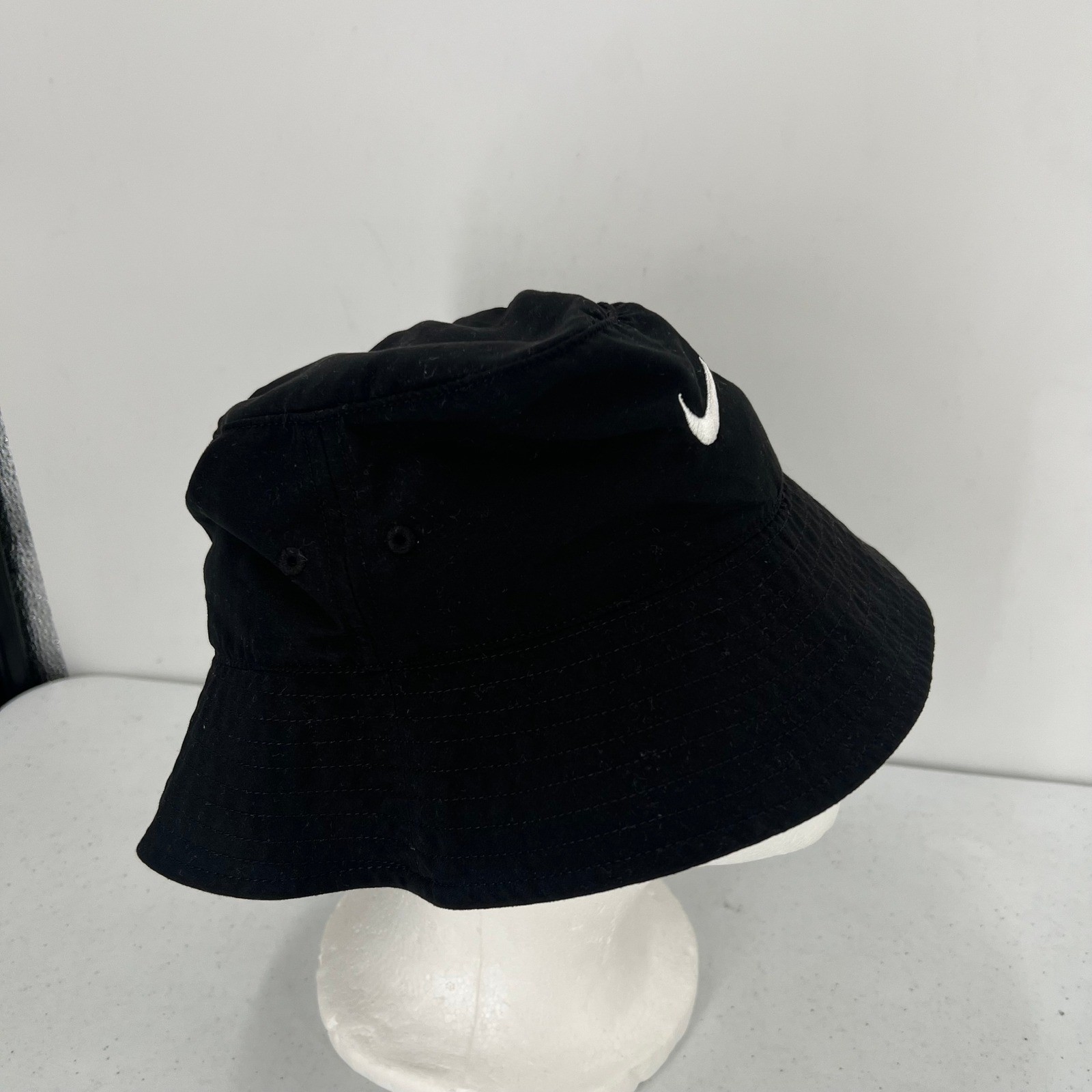 как выглядит Nike Kids Black Bucket Hat UPF 40 Plus Sun Protection Swoosh Logo 90s Y2K Beach фото