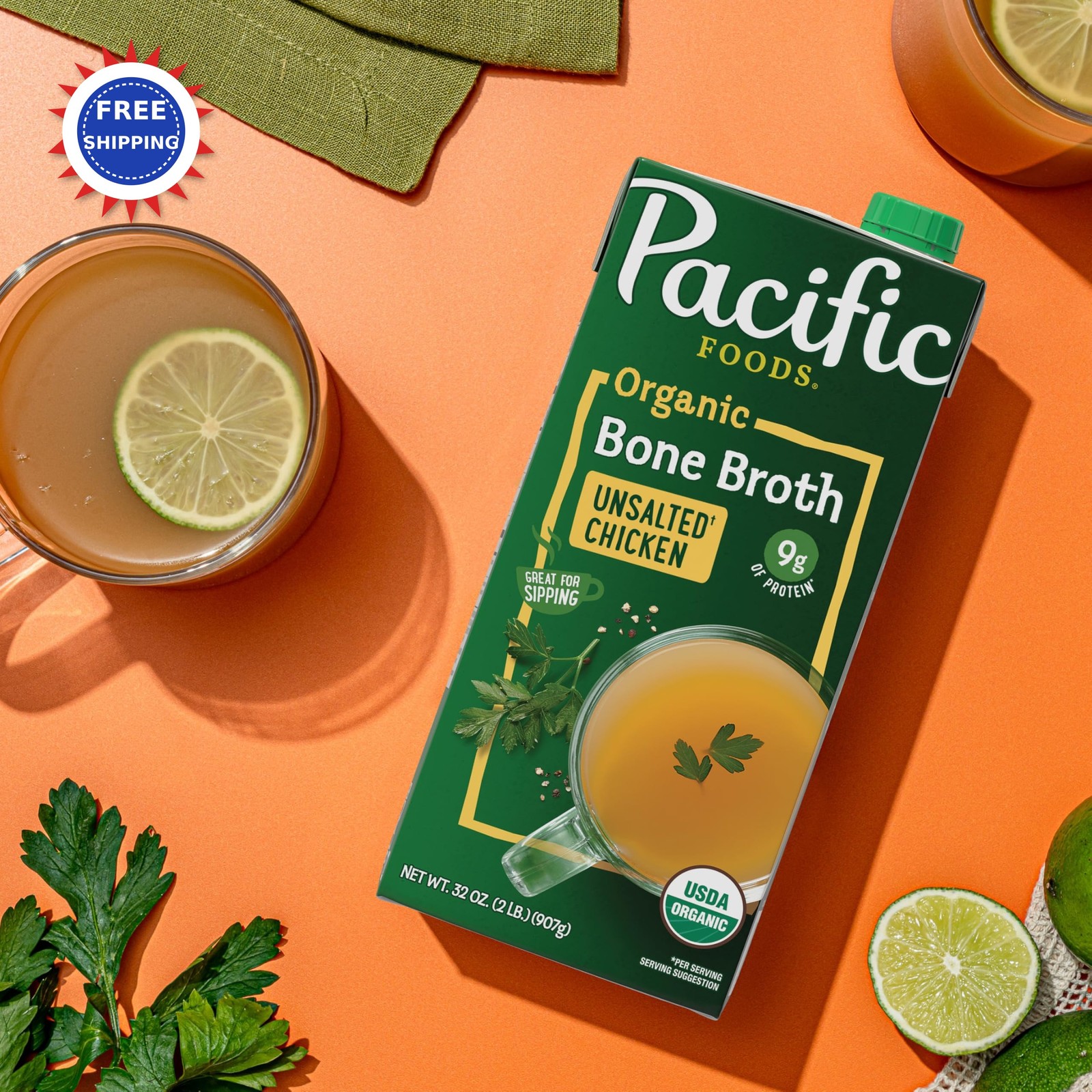 Bone Broth Organic Unsalted Chicken 32 Oz Pacific Foods Carton vehicle auto