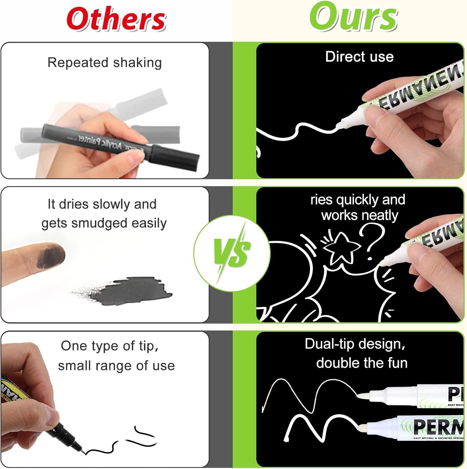 Acrylic White Paint Pens 6 Pack White Permanent Marker with Extra Fine Point