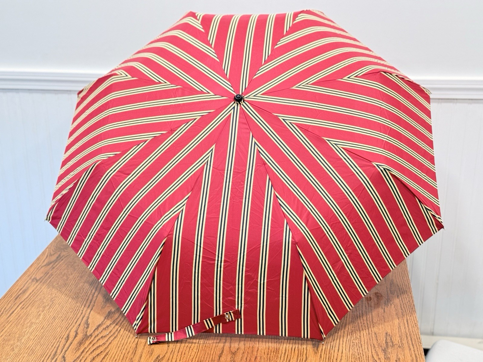 Brooks Brothers Red Gold Navy Blue 1 Repp Stripe Collapsible Umbrella NR