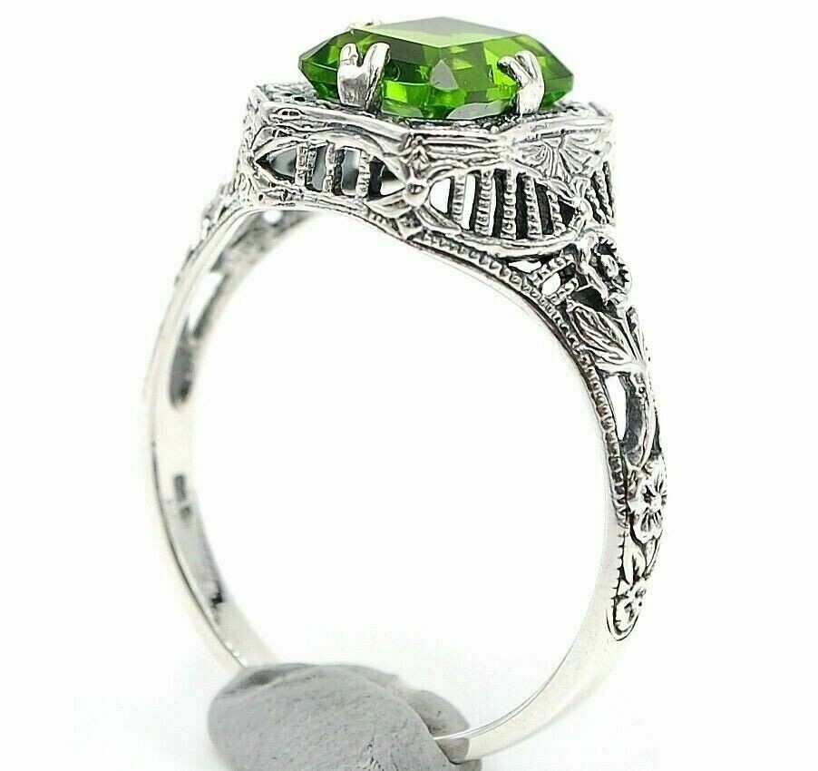 как выглядит 1CT Natural Peridot 925 Solid Sterling Silver Filigree Ring Jewelry Sz 6 фото