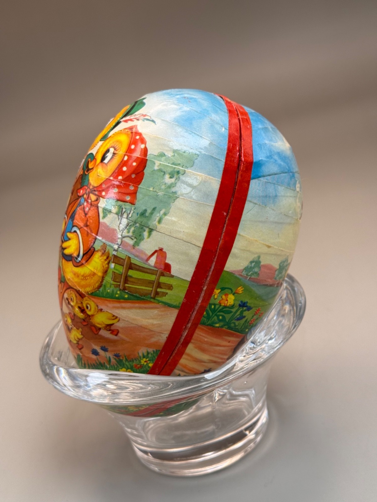 • Vintage Paper Mache' Easter Egg Germany 5 1/2" The Little Duck Family so Sweet