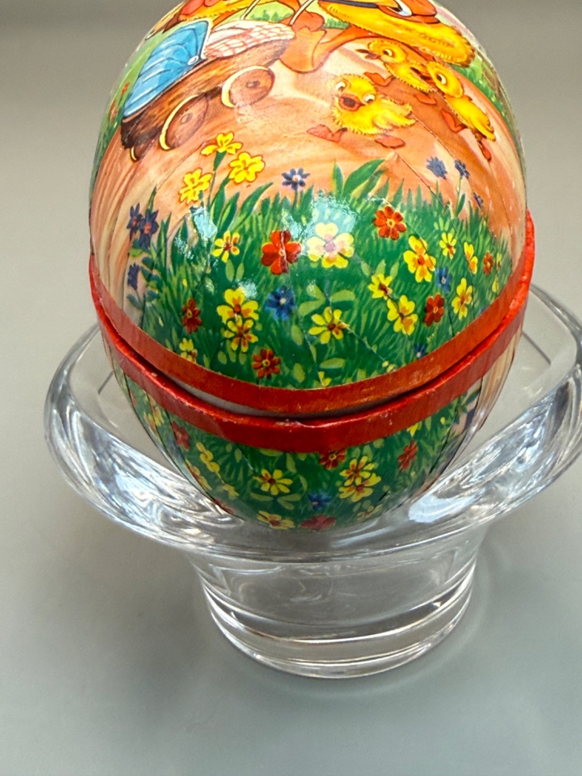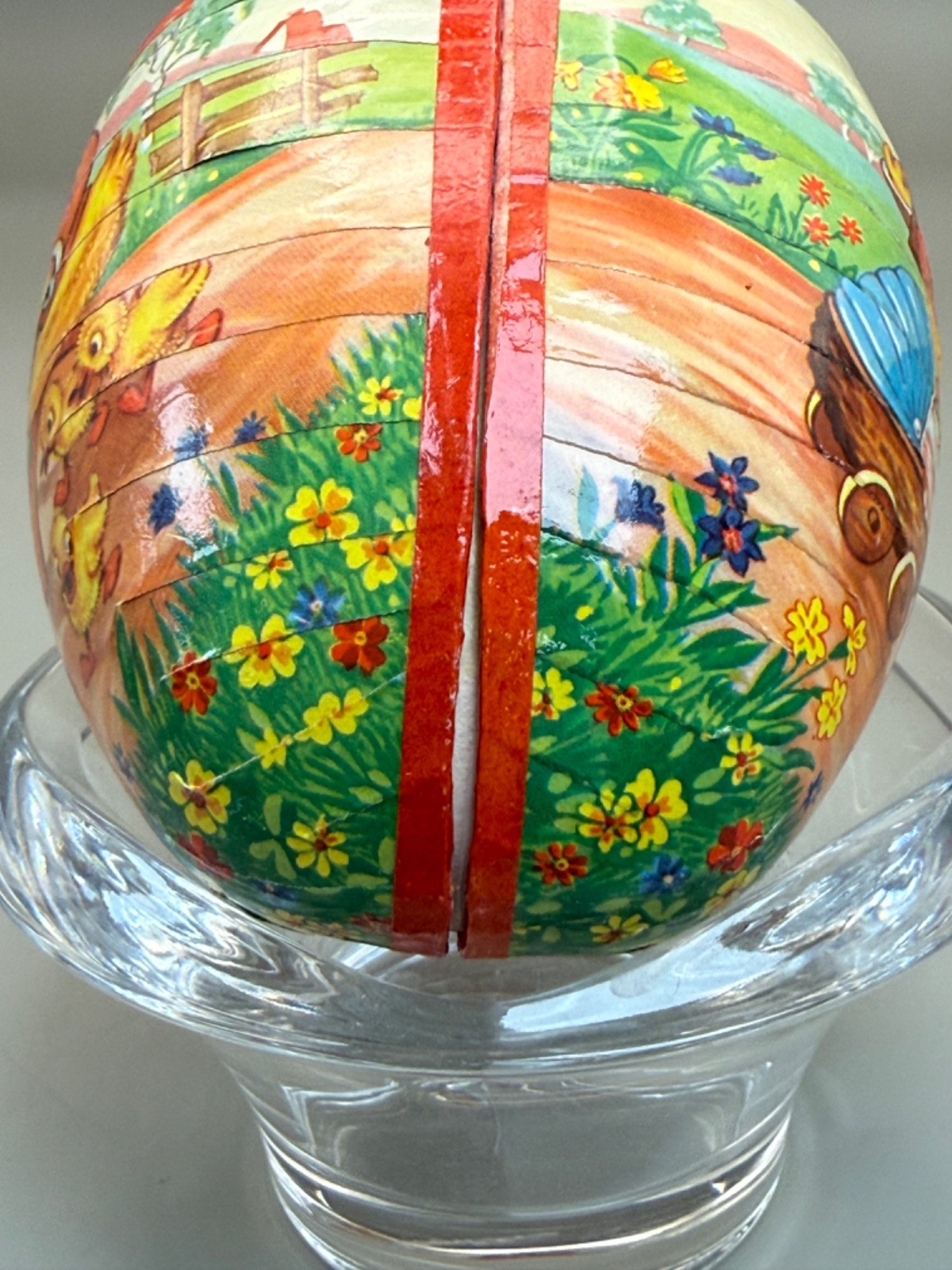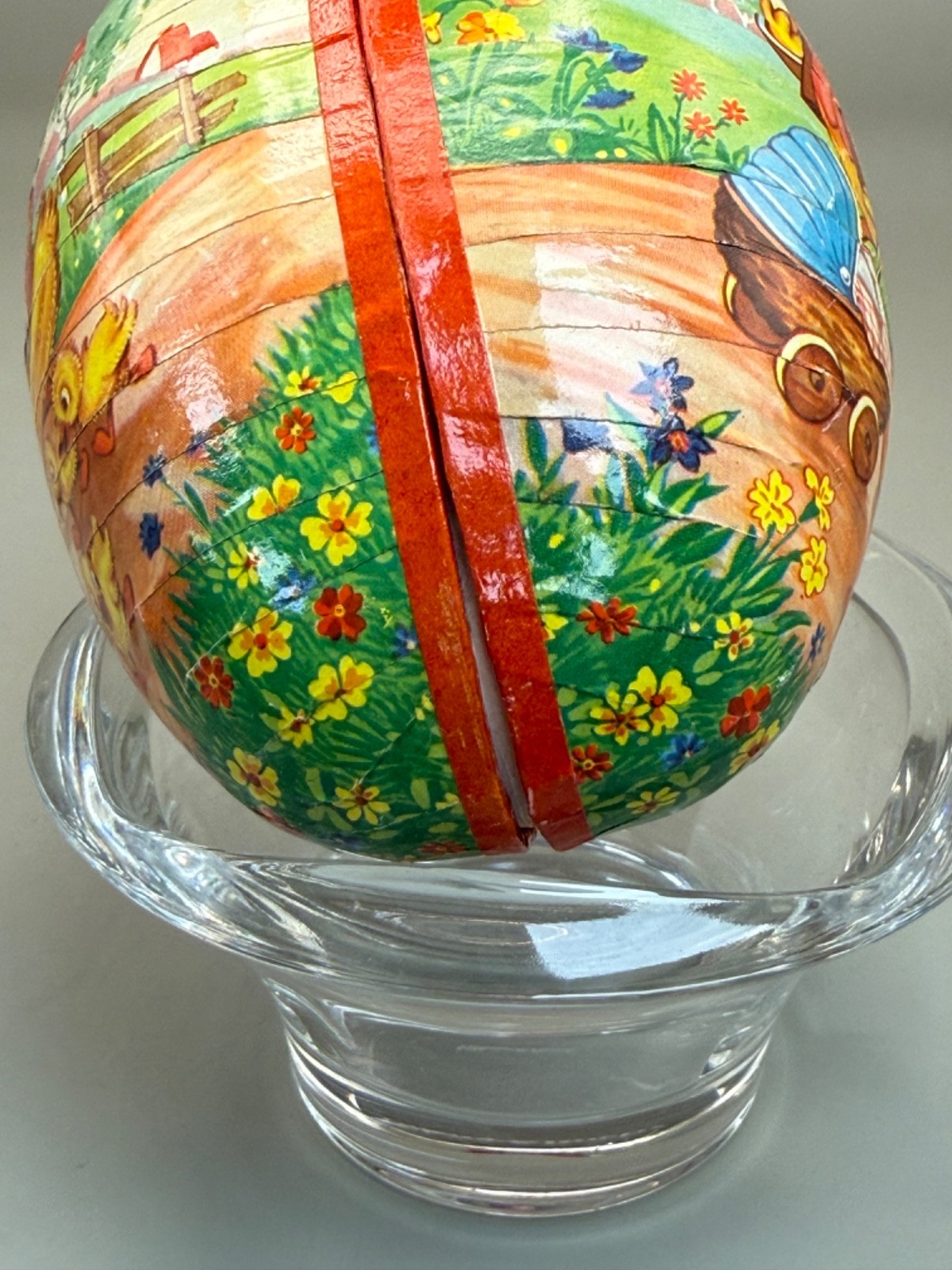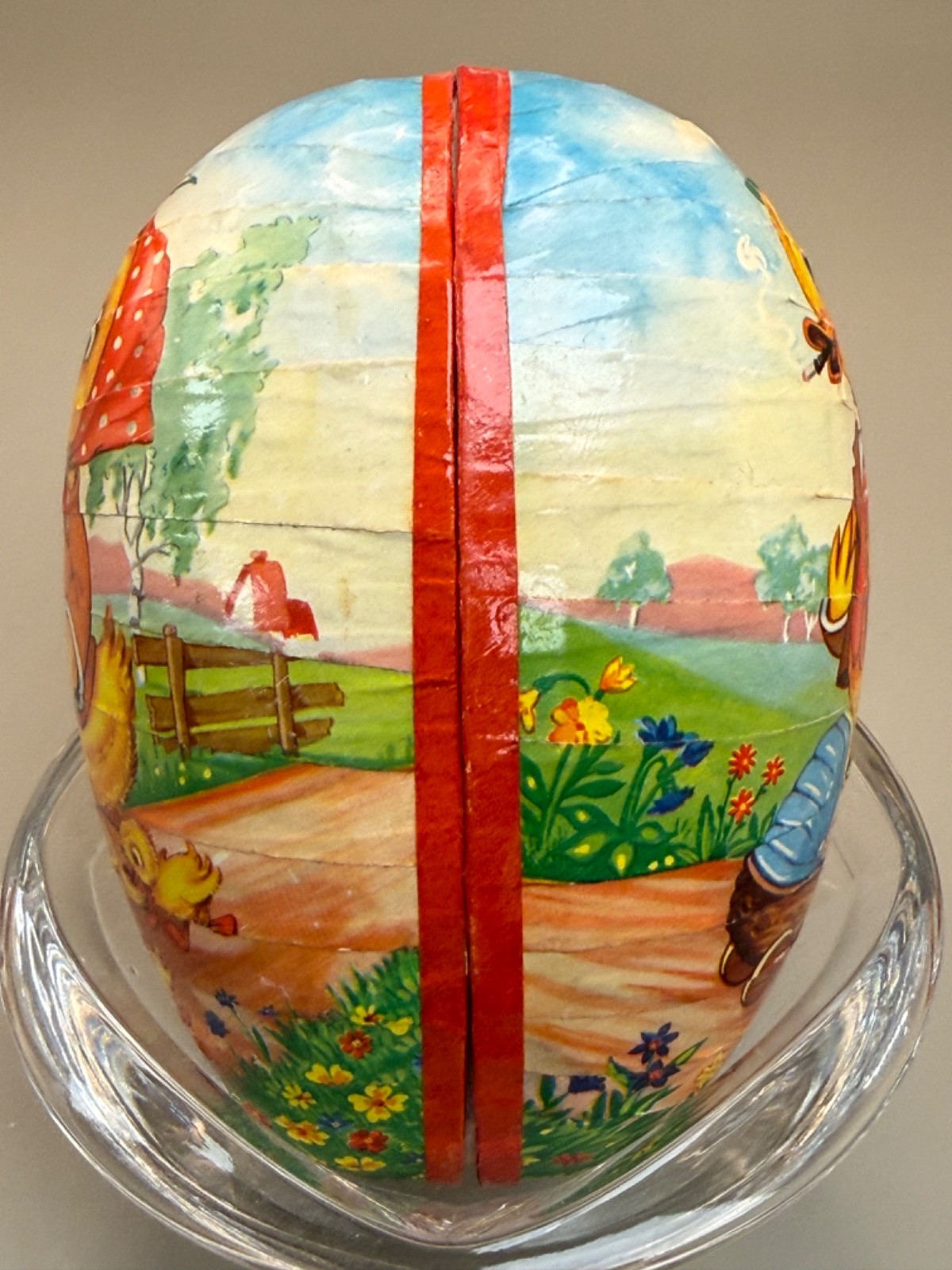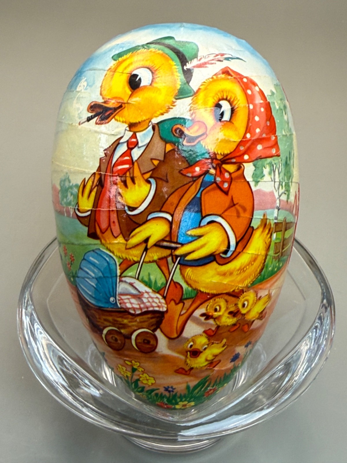 Vintage Paper Mache' Easter Egg Germany 5 1/2" The Little Duck Family so Sweet