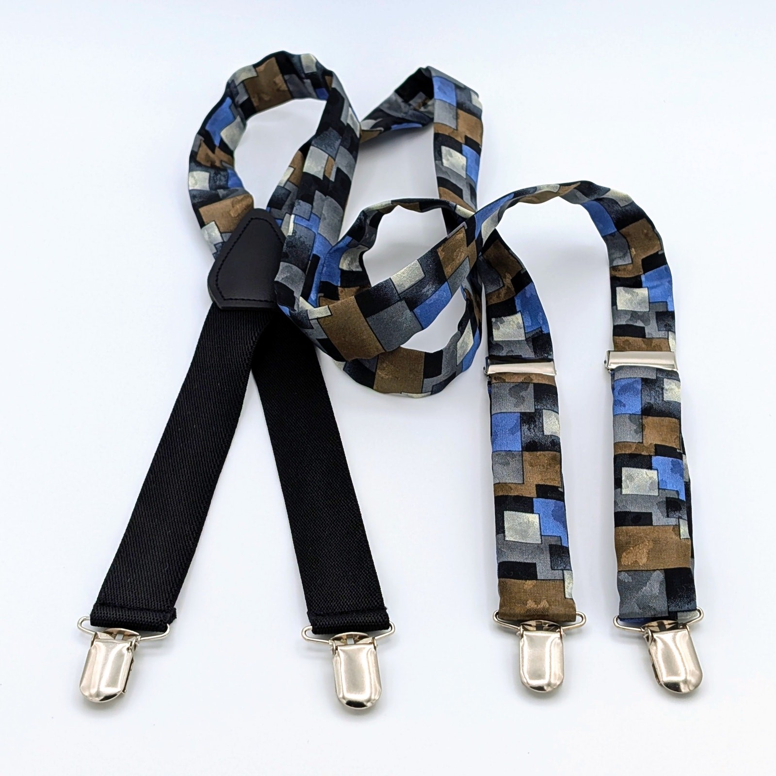 Retro Y-Back Suspenders Clip On Adjustable 90s Geometric Brown Blue Black Gray