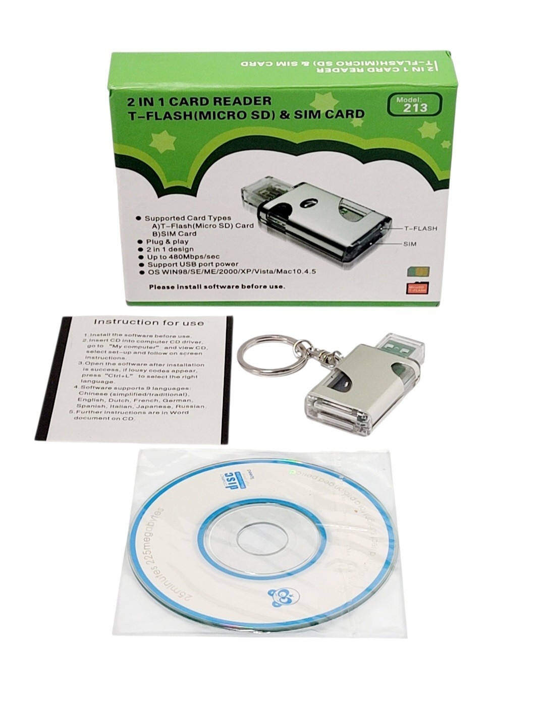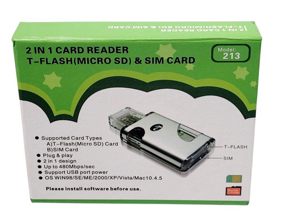 2-in-1 USB Card Reader Model 213 For T-Flash Micro SD SIM cards New In Box