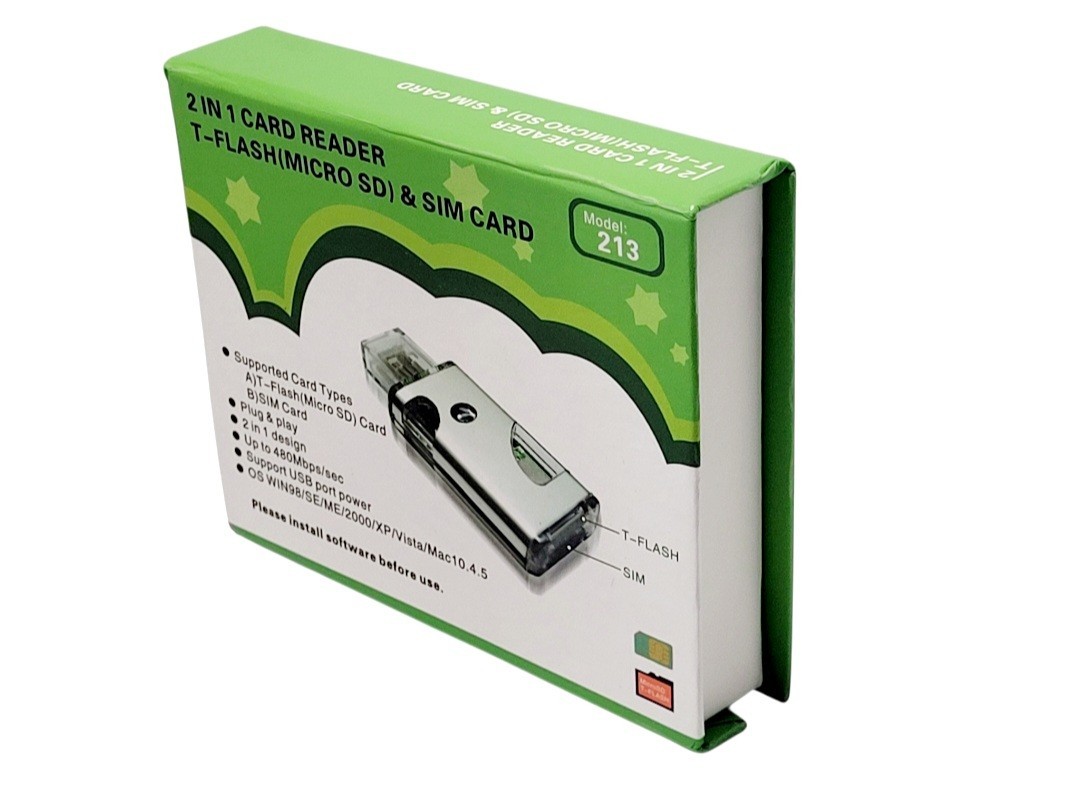 как выглядит 2-in-1 USB Card Reader Model 213 For T-Flash Micro SD SIM cards New In Box фото