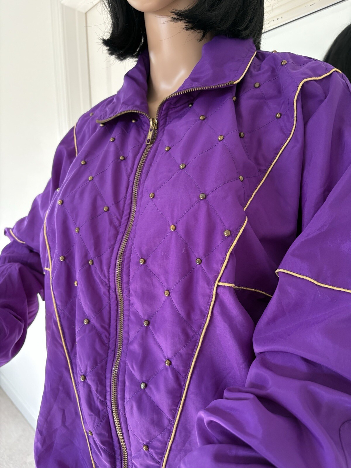 Vintage 80s Windbreaker Jacket Women s Purple Gold Active Wear Retro Sz SM