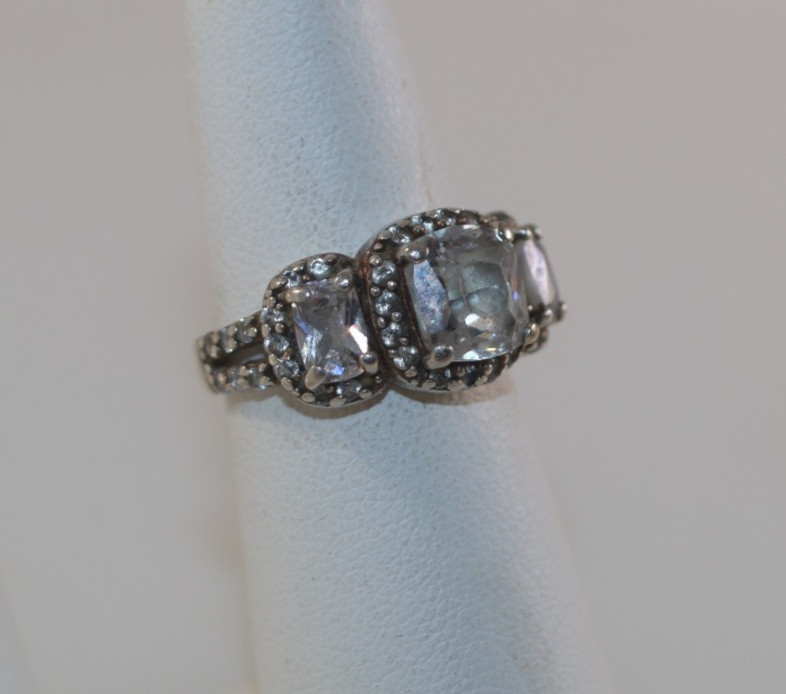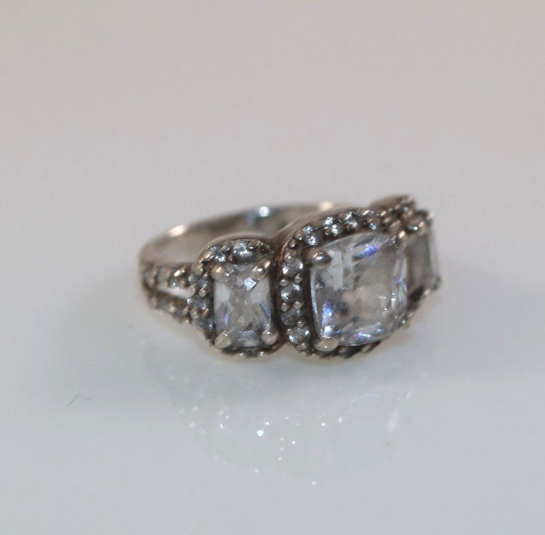 как выглядит VINTAGE .925 STERLING Silver CZ 3 STONE SIZE 6 ENGAGEMENT PROMISE RING фото
