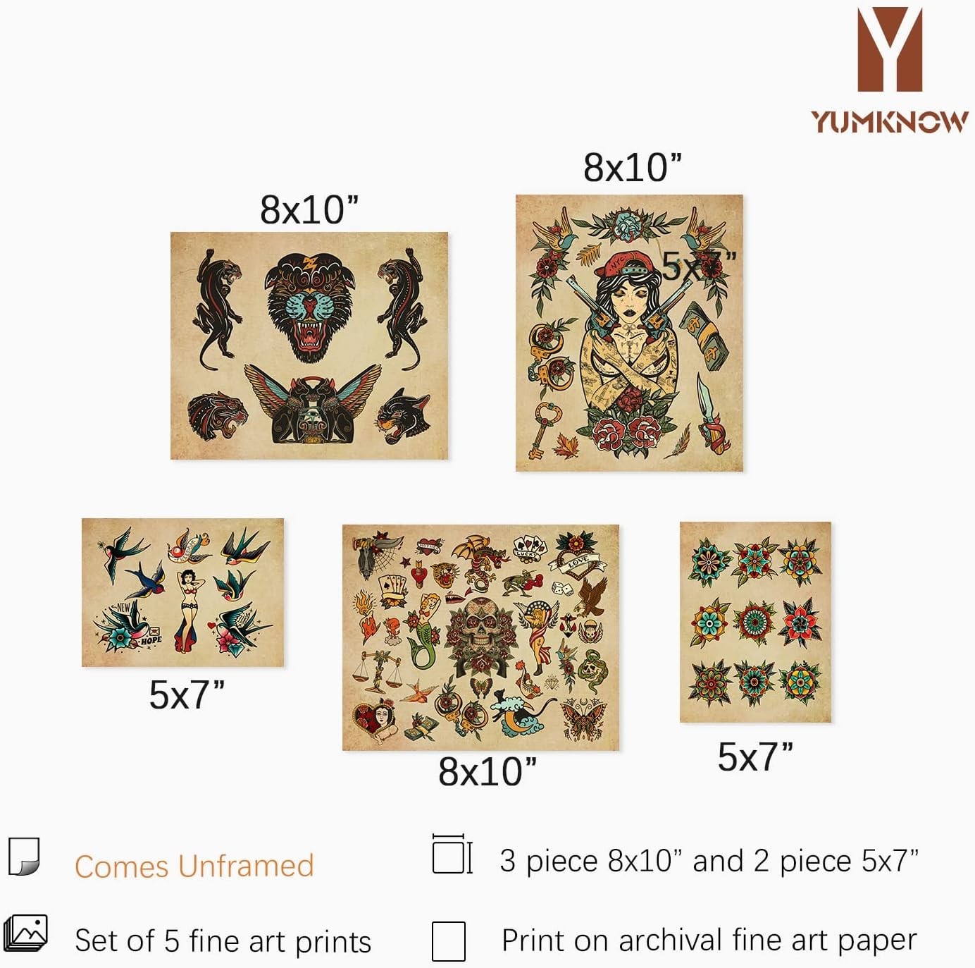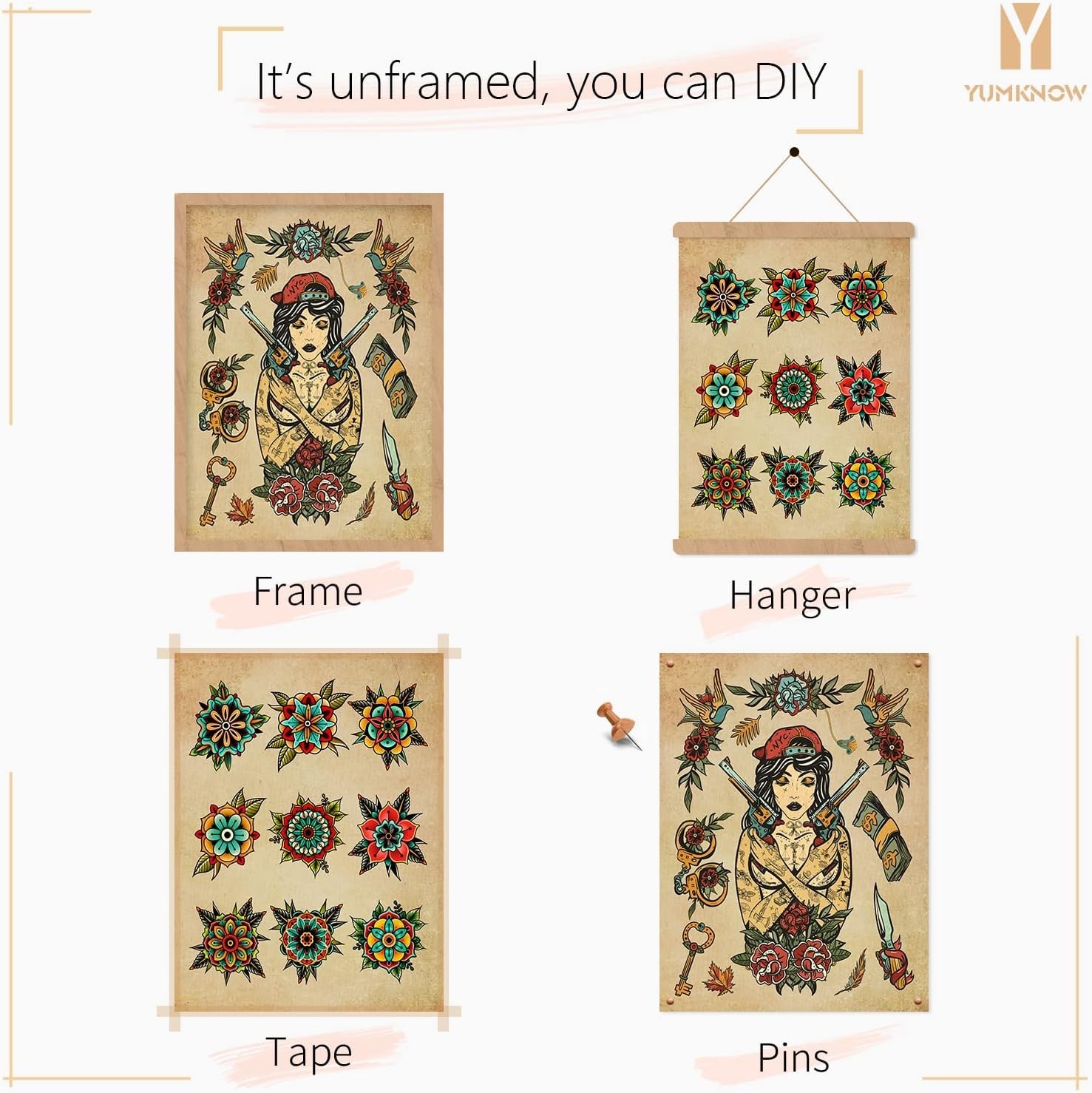 Vintage Tattoo Flash Wall Art Decor - Gifts for Tattooist - Tattoo Poster P...