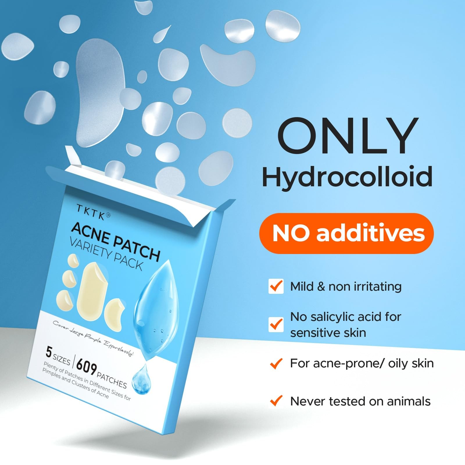 TKTK 609 Count Pimple Patches for Face, Hydrocolloid Acne 5 Sizes 609