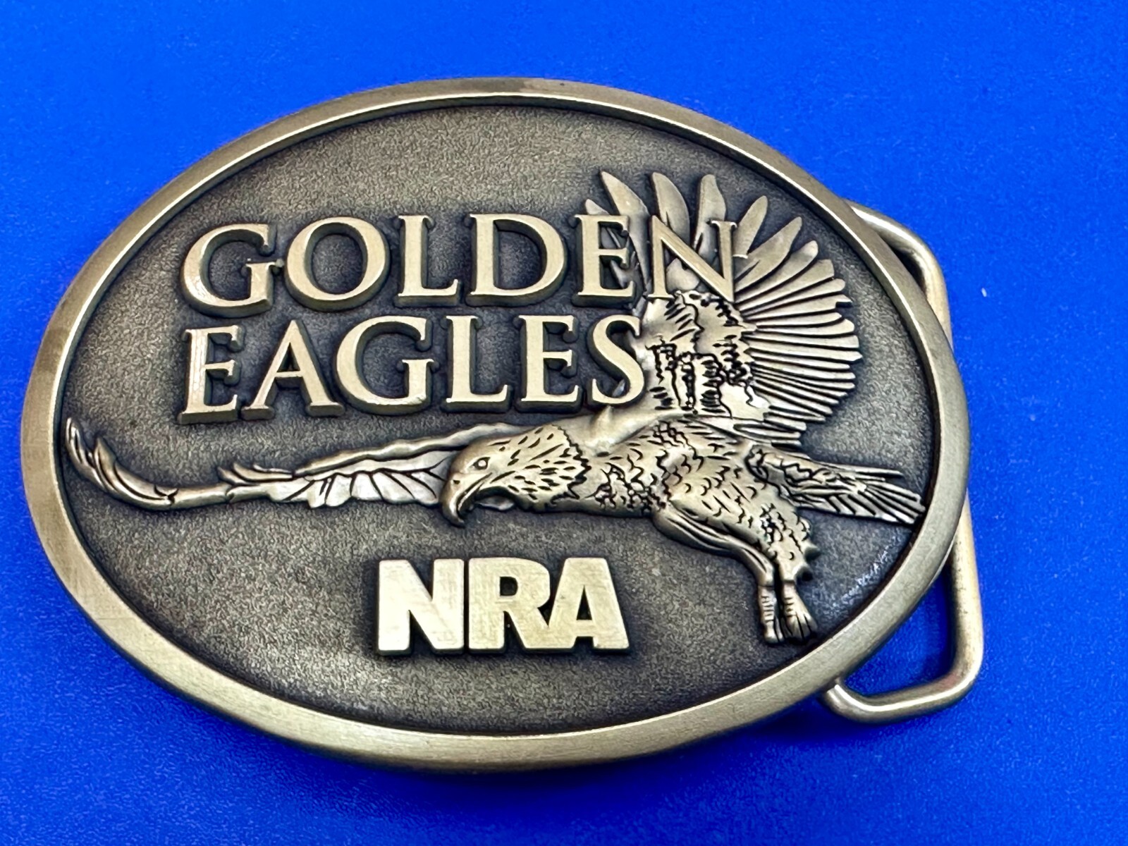 как выглядит NRA Golden Eagle National Rifle Association Wings Wide Brass Tone Belt Buckle фото