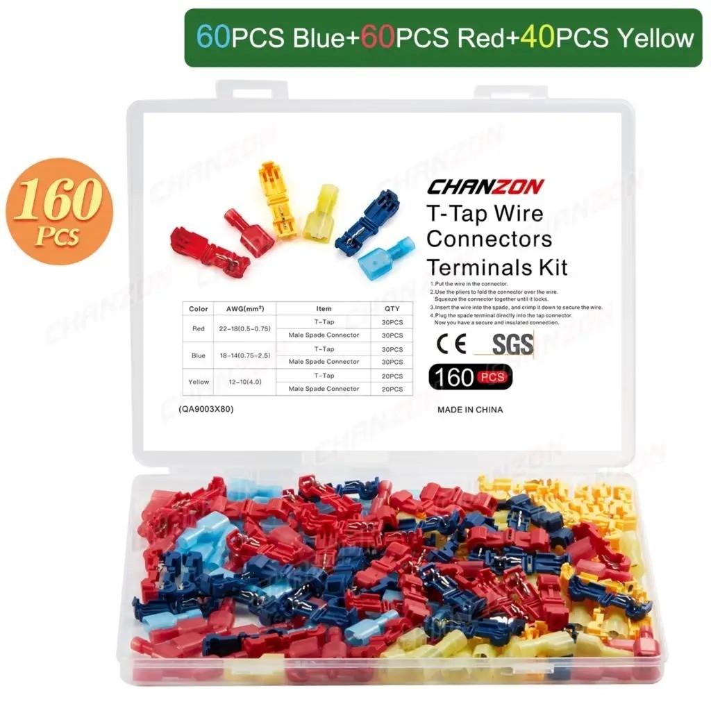60PCS Insulated 22-10 AWG T-Taps Quick Splice Wire Terminal Connectors Combo Kit