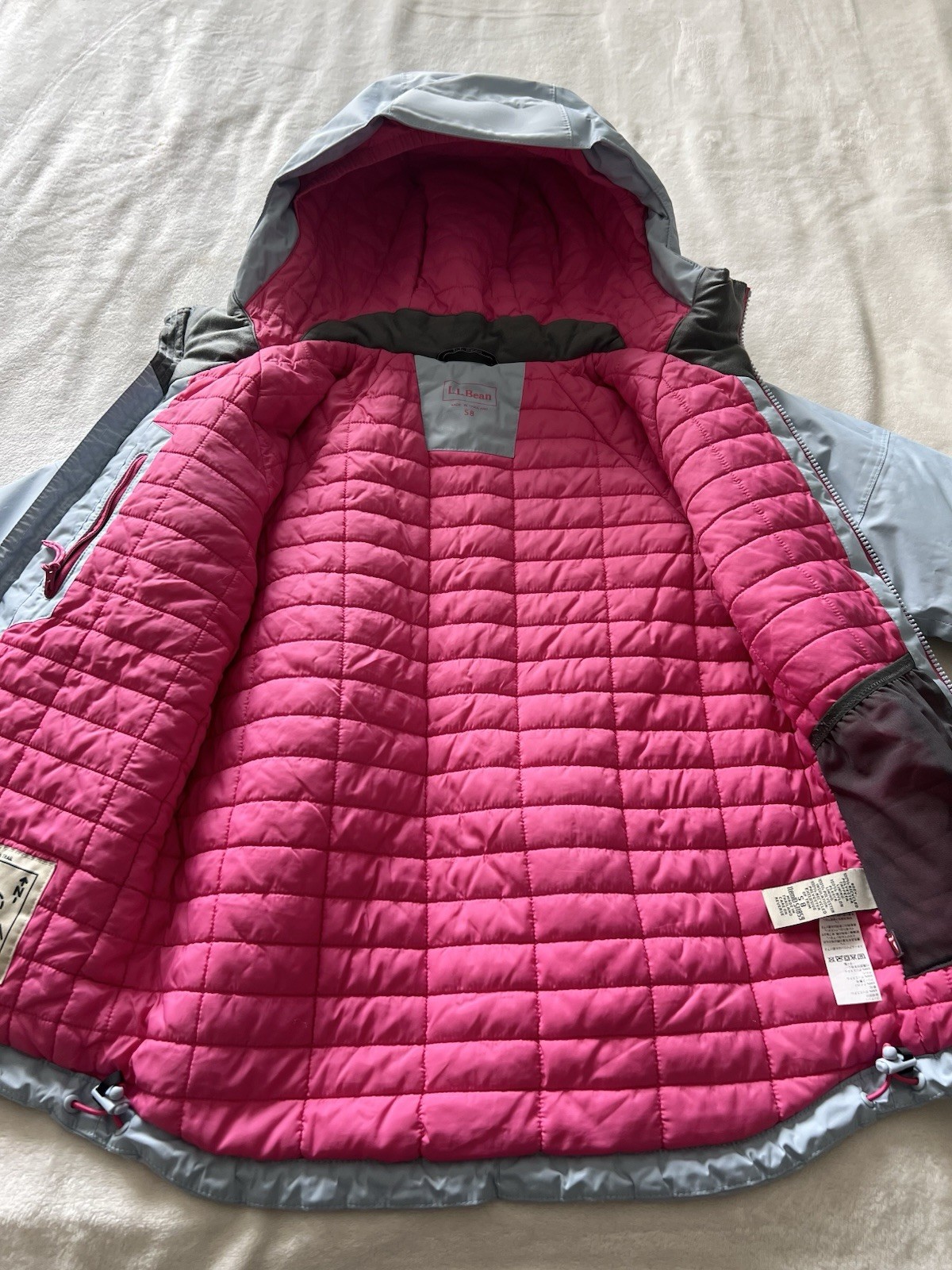 как выглядит L.L.Bean Girls Wildcat Waterproof Ski Jacket Size 8 Blue Pink Outdoor Hooded фото