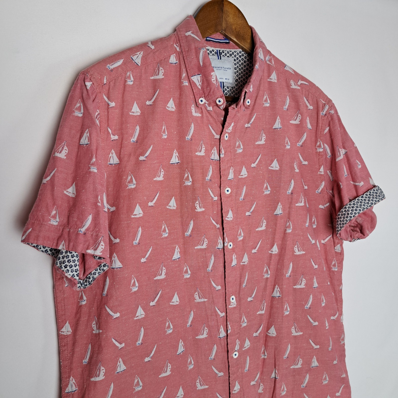 Denim Flower Ricky Singh Shirt Mens Large Button Down Flip Short Sleeve Boat