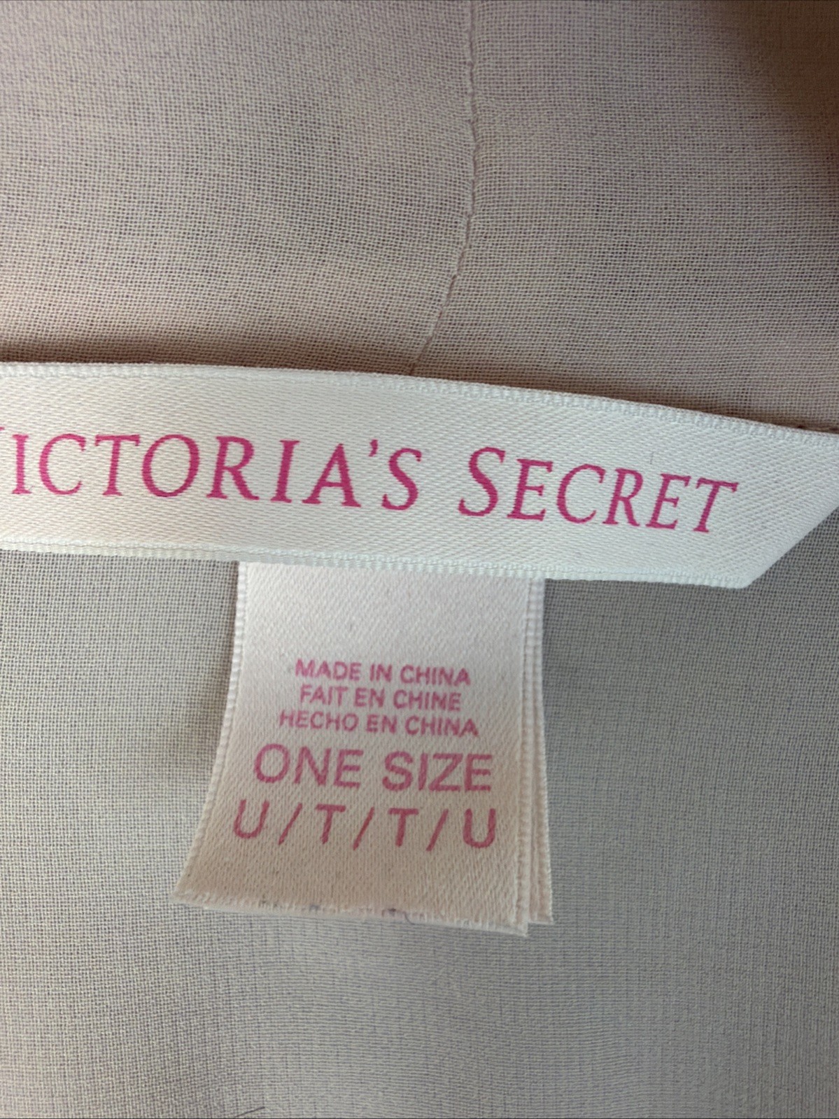 как выглядит Victorias Secret Robe Short Lace Satin Kimono Sheer One Size Nude Pink No Belt фото