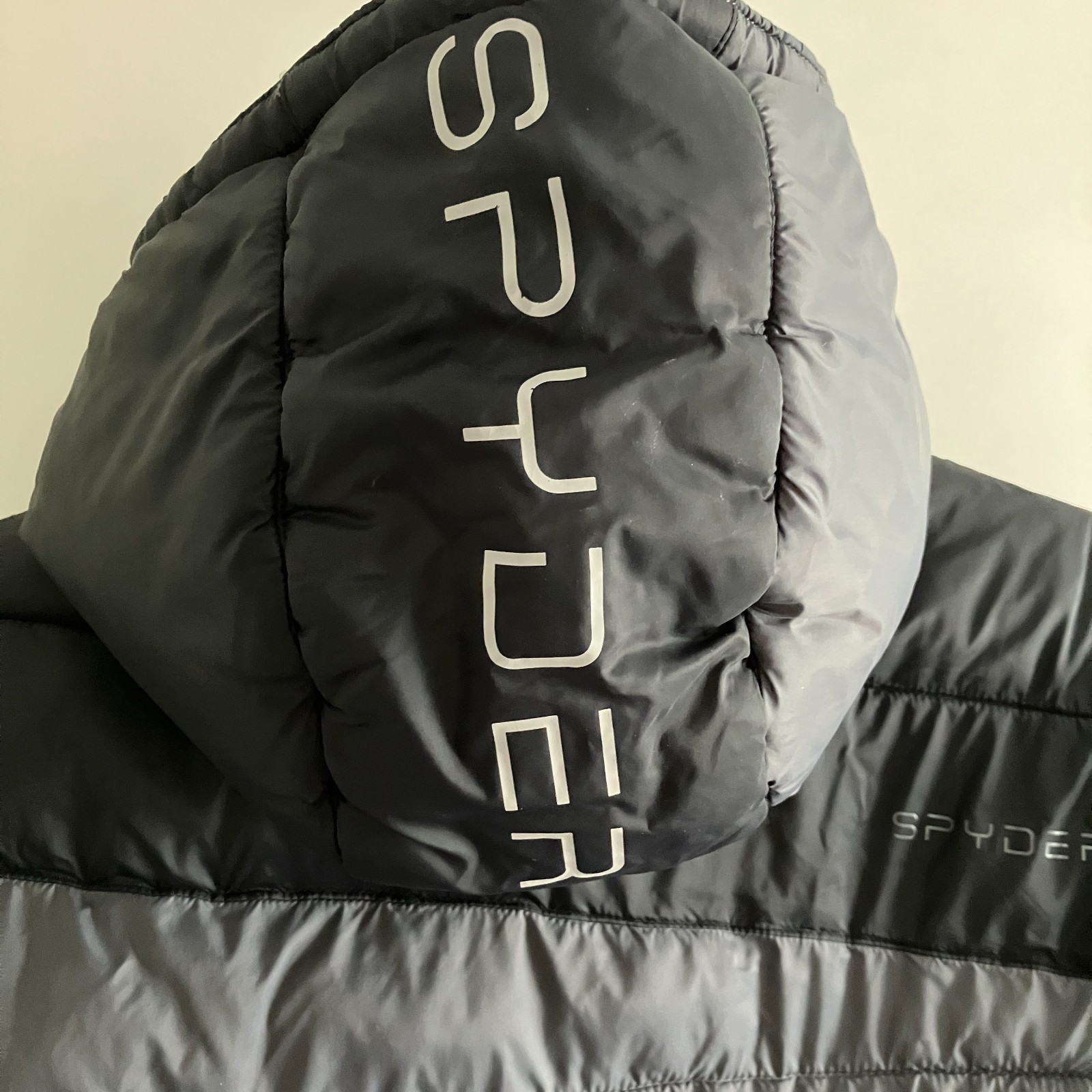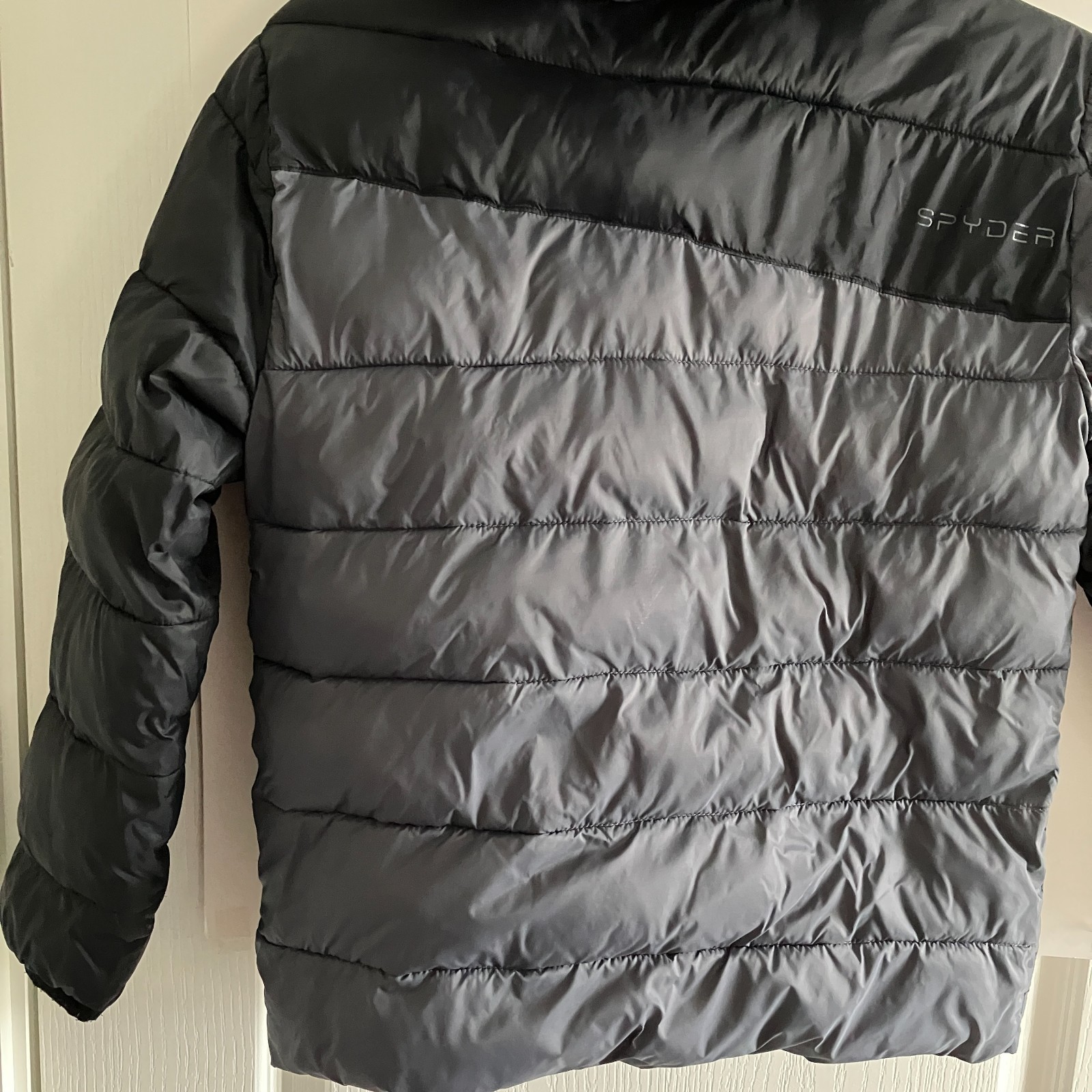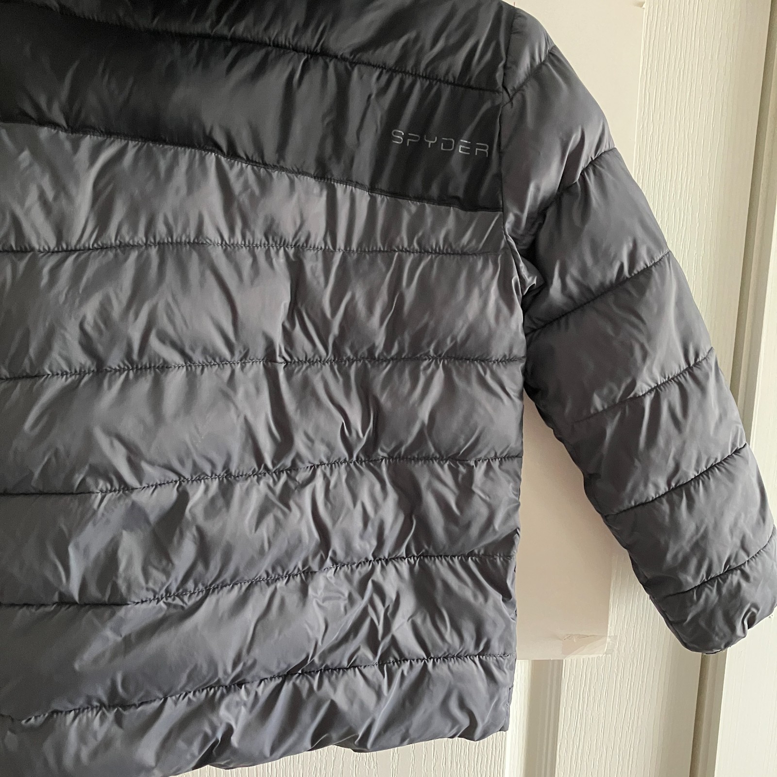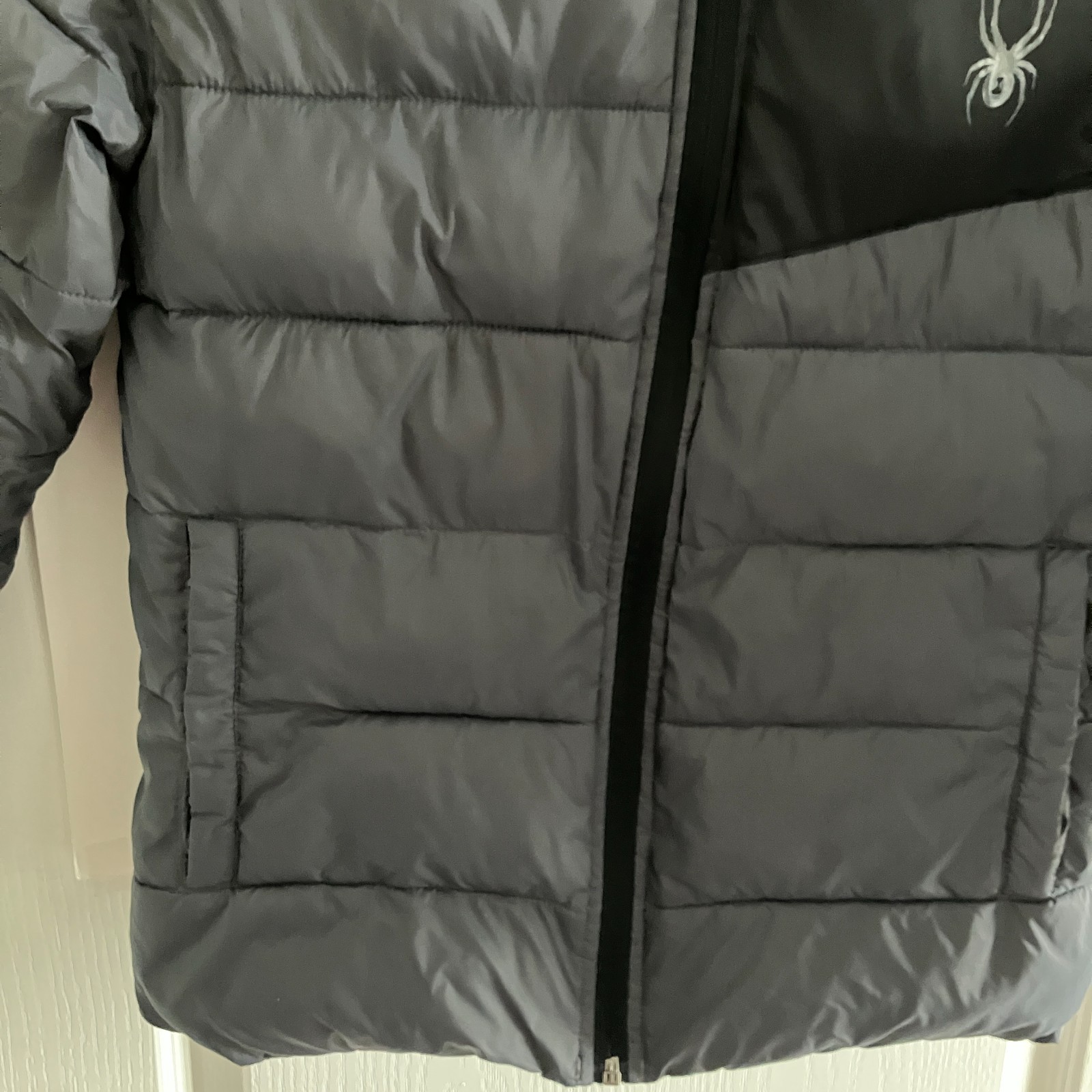 как выглядит Spyder Jacket Youth Medium 10/12 Black Gray Hooded Puffer Zip Ski Snow Winter фото