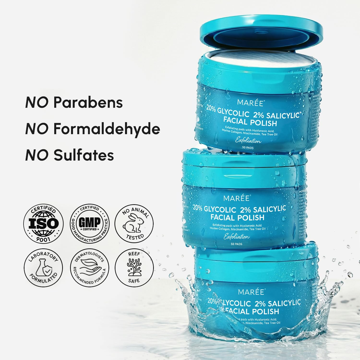 Glycolic Acid Pads 2 Salicylic Acid Toner Pads for Face with 20 Glycolic A