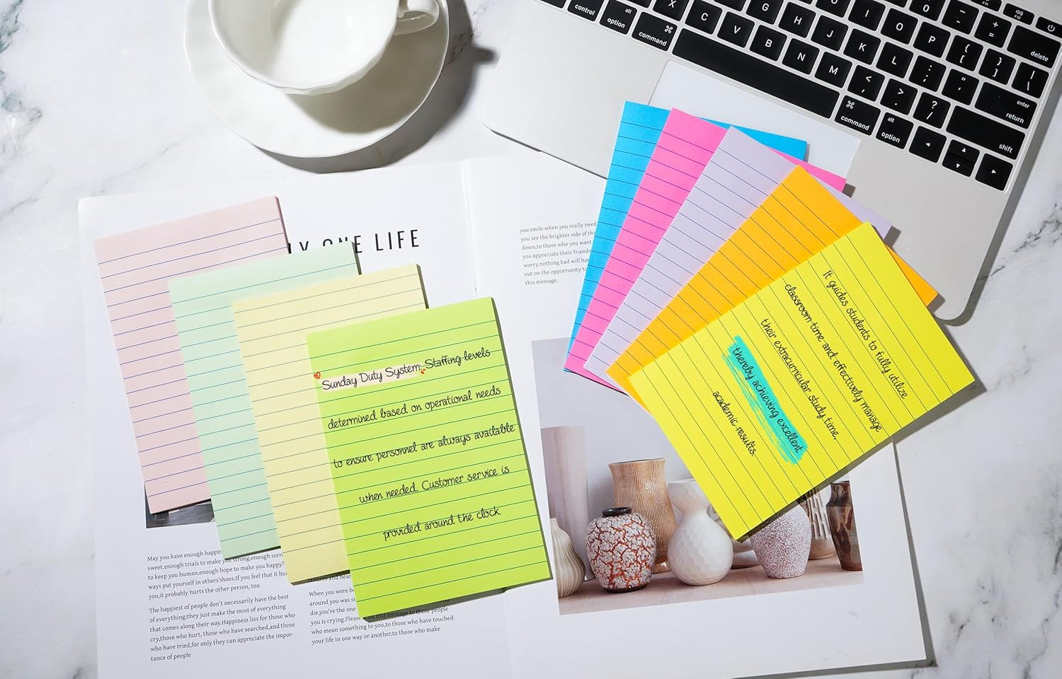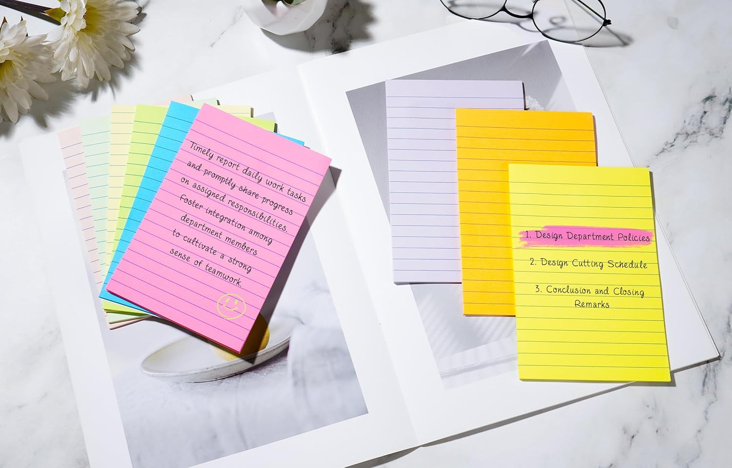как выглядит 18 Pack Lined Sticky Notes 4X6 in Post, Self-Stick Pads Bright Colors Sticky N фото