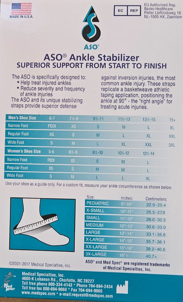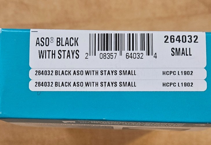 Med Spec ASO Ankle Stabilizer Black Size Small New in Box