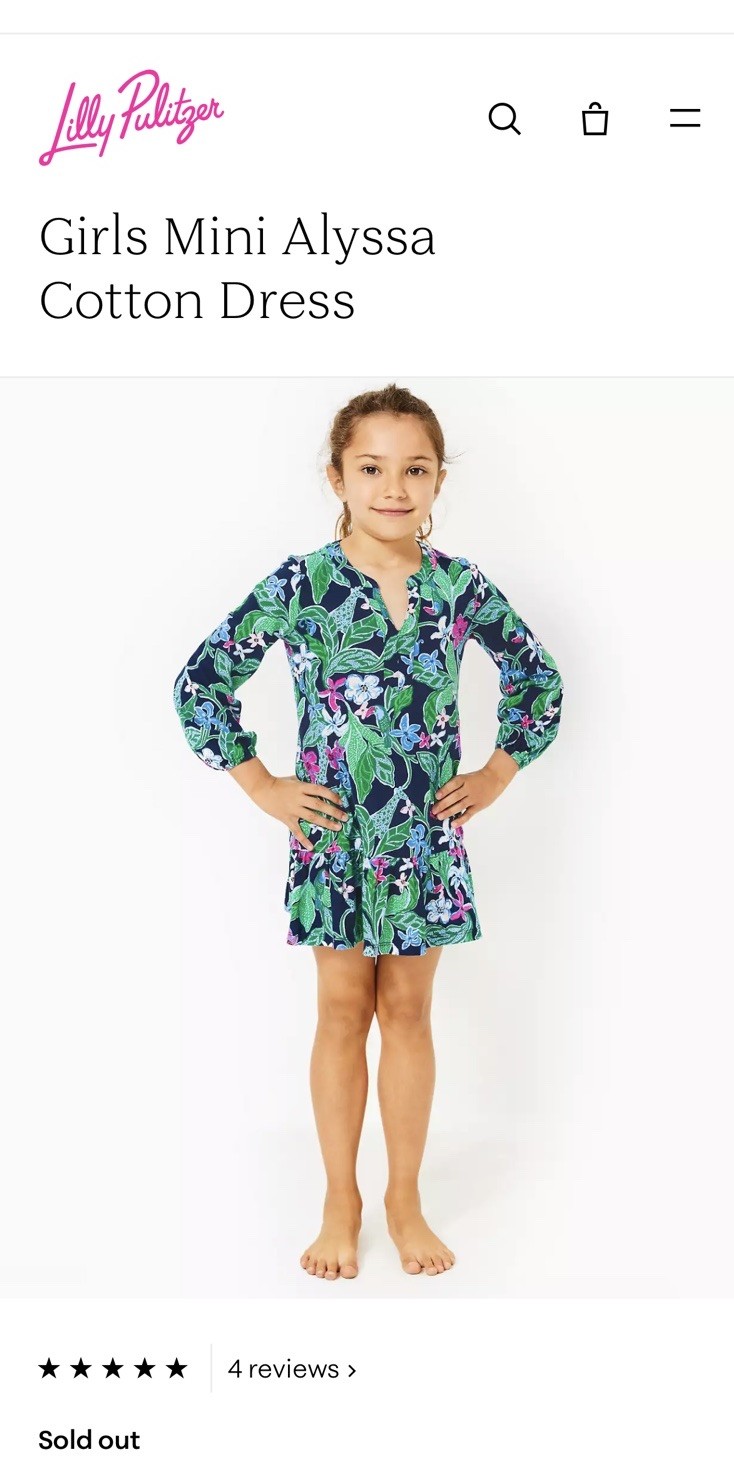 Lilly Pulitzer Girls 8-10 Dress Mini Alyssa Cotton Pullover UNTAMED Print