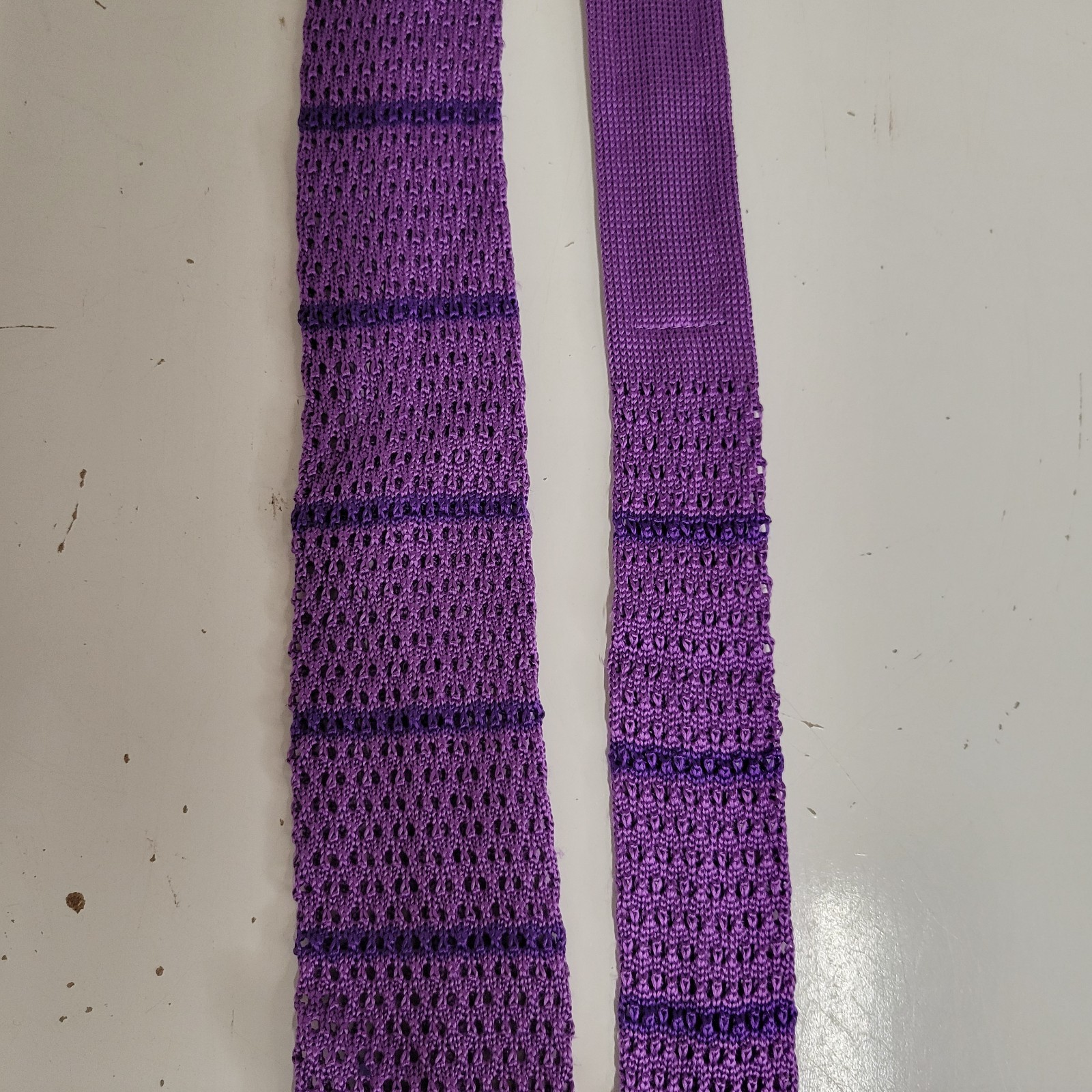 как выглядит Brooks Brothers Purple Striped Silk Square End Knit Tie Necktie 2.5X60 фото