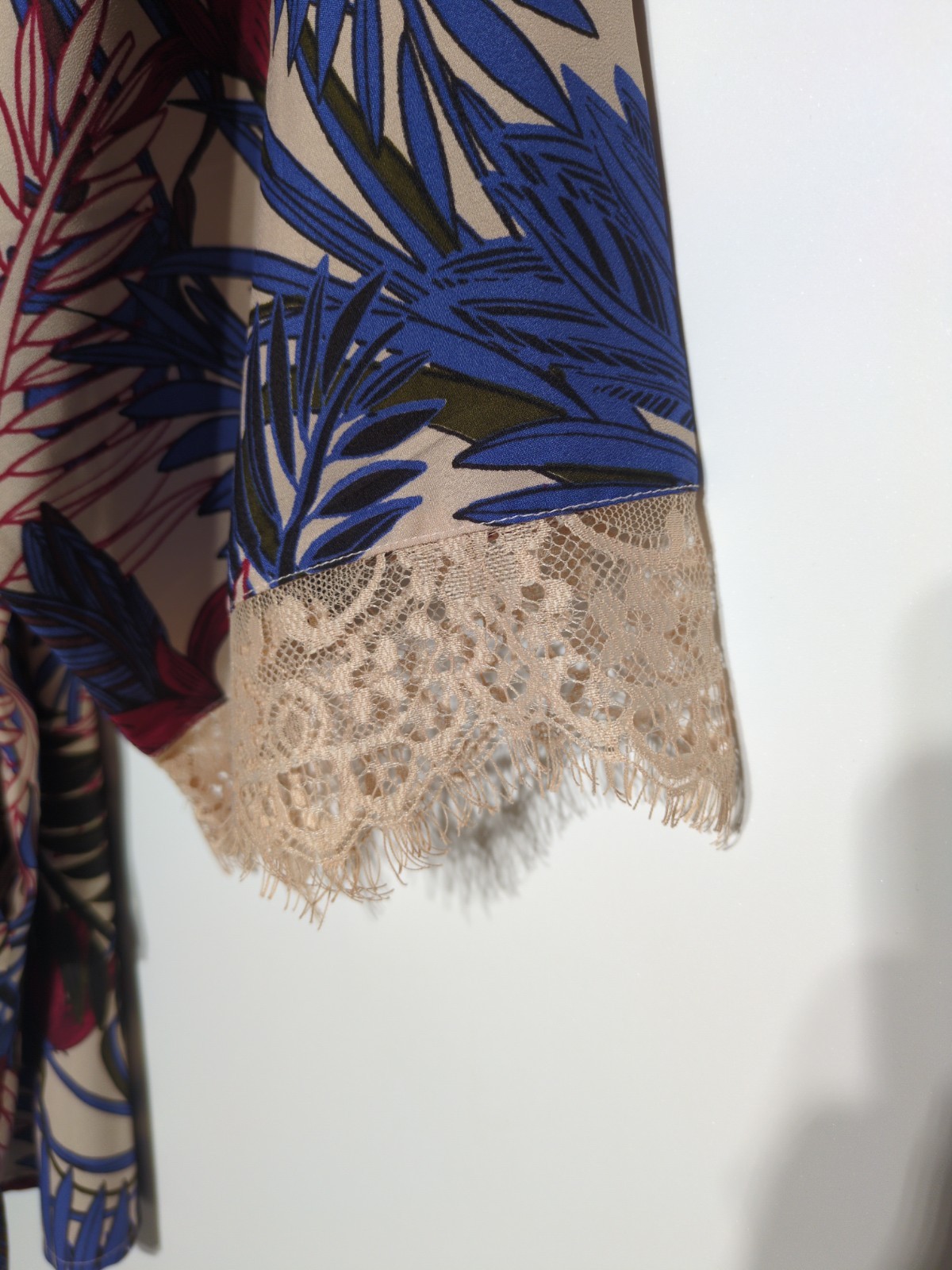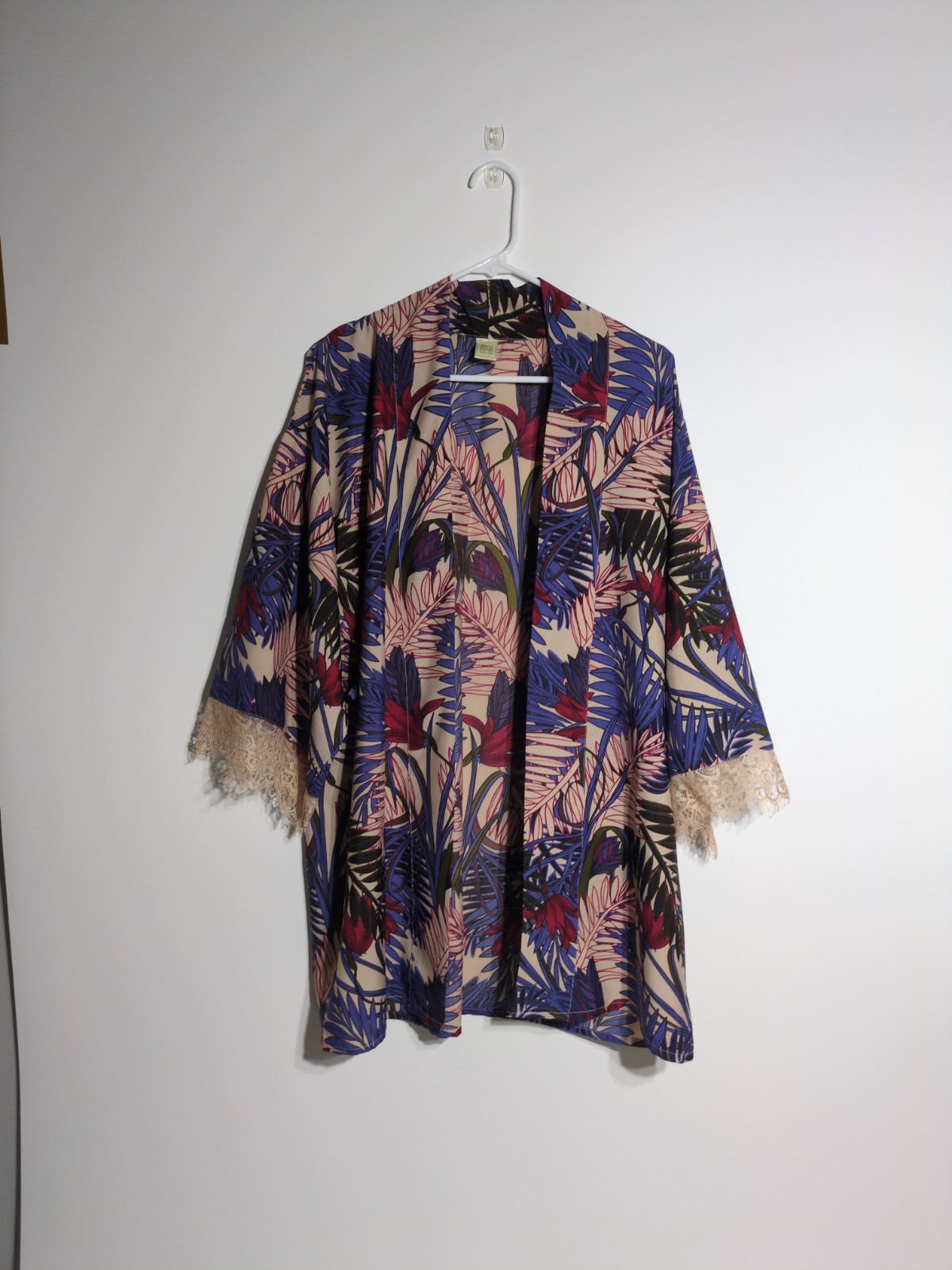 как выглядит Japna Lounge Kimono Cardigan Womens Medium Tropical Leaves Lace 3/4 Sleeve фото